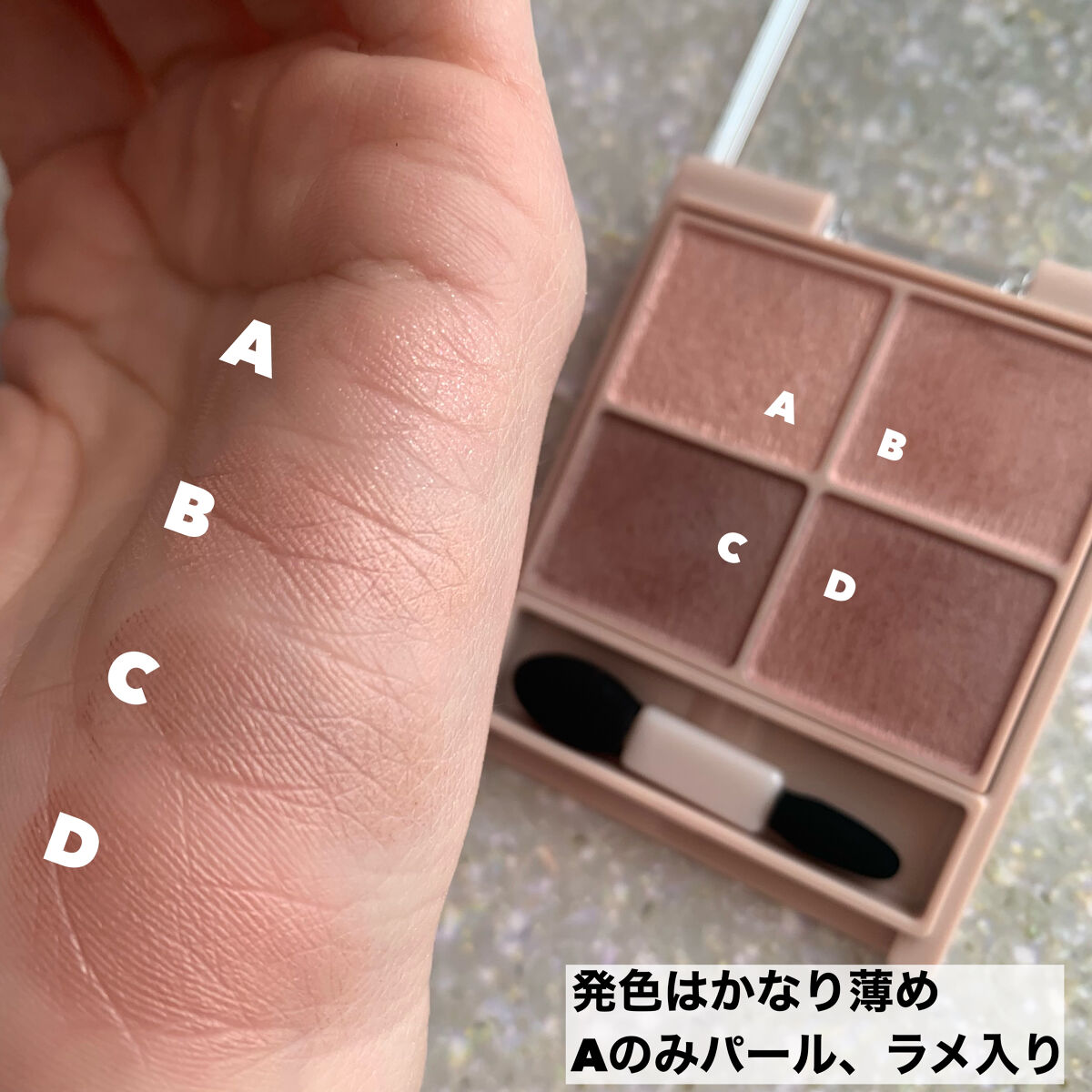 - シルキースフレアイズの姉妹品♡ 肌に溶け込むような透けマットシャドウ 透け感のある柔らかい仕上がりになるマット3色と、透け発色の繊細ラメ1色のパレットシャドウ♡ 完全マットアイや、ラメ×マットアイなど、メイクのパターンを楽しみましょう!
