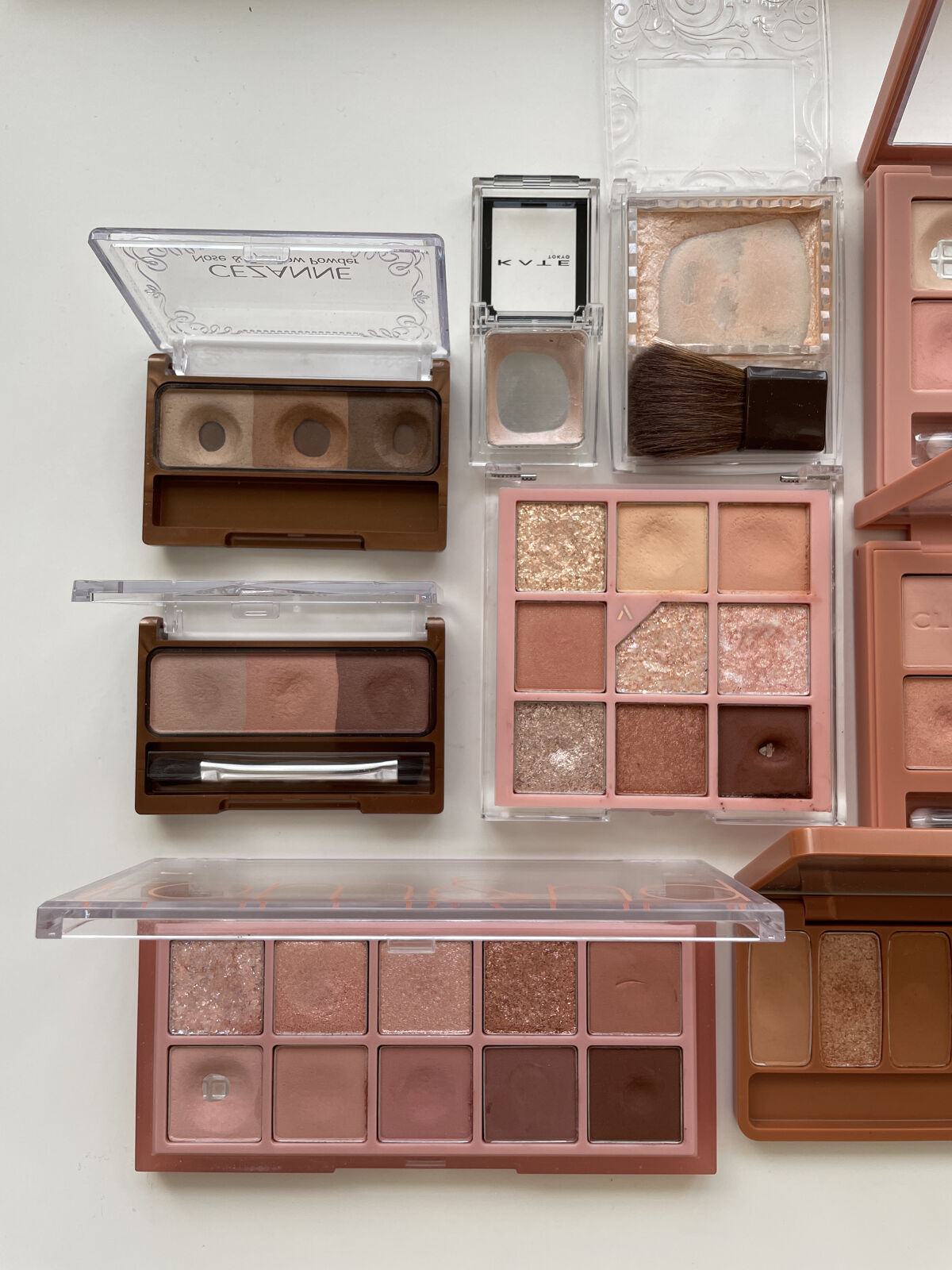 マット、マットパール、ラメ、グリッターとこのアイシャドウを1つ持っていれば、さまざまなメイクが出来て楽しめます🌟 CLIOは本当にラメが最強!! 可愛過ぎるんです🥺💞 01 SIMPLY PINKは色んなピンクが入っていて、03 CORAL TALKはオレンジとピンクの中間のようなカラーでどちらも本当に使いやすかったです!! マットカラーが肌に凄く馴染みます!! オレンジのようなピンクのようなコーラルカラーが本当に可愛いんです🧡 ラメに、青のラメが入っているので存在感のある目元に仕上がります✨ 00ライト&グリッターガーデンは、全色ラメ、グリッターでいつものメイクを華やかにしてくれて、上段1番左のカラーは涙袋に入れると、キラッキラで盛れます!! 03 ROSEBUD GARDENの底見えしているカラーは、少し青みがかっているピンクなのですが、自然に発色してくれるので上まぶた全体に塗っても可愛いですし、下まぶたに塗っても、クマっぽくならないのがお気に入りです!! 08 PEACH DAHLIA GARDENは、ほとんど下段左から2番目のラメを使う事が本当に多かったです!! 細かいけど、しっかりキランキランするラメで見た目よりも白っぽいラメで存在感があります🌟