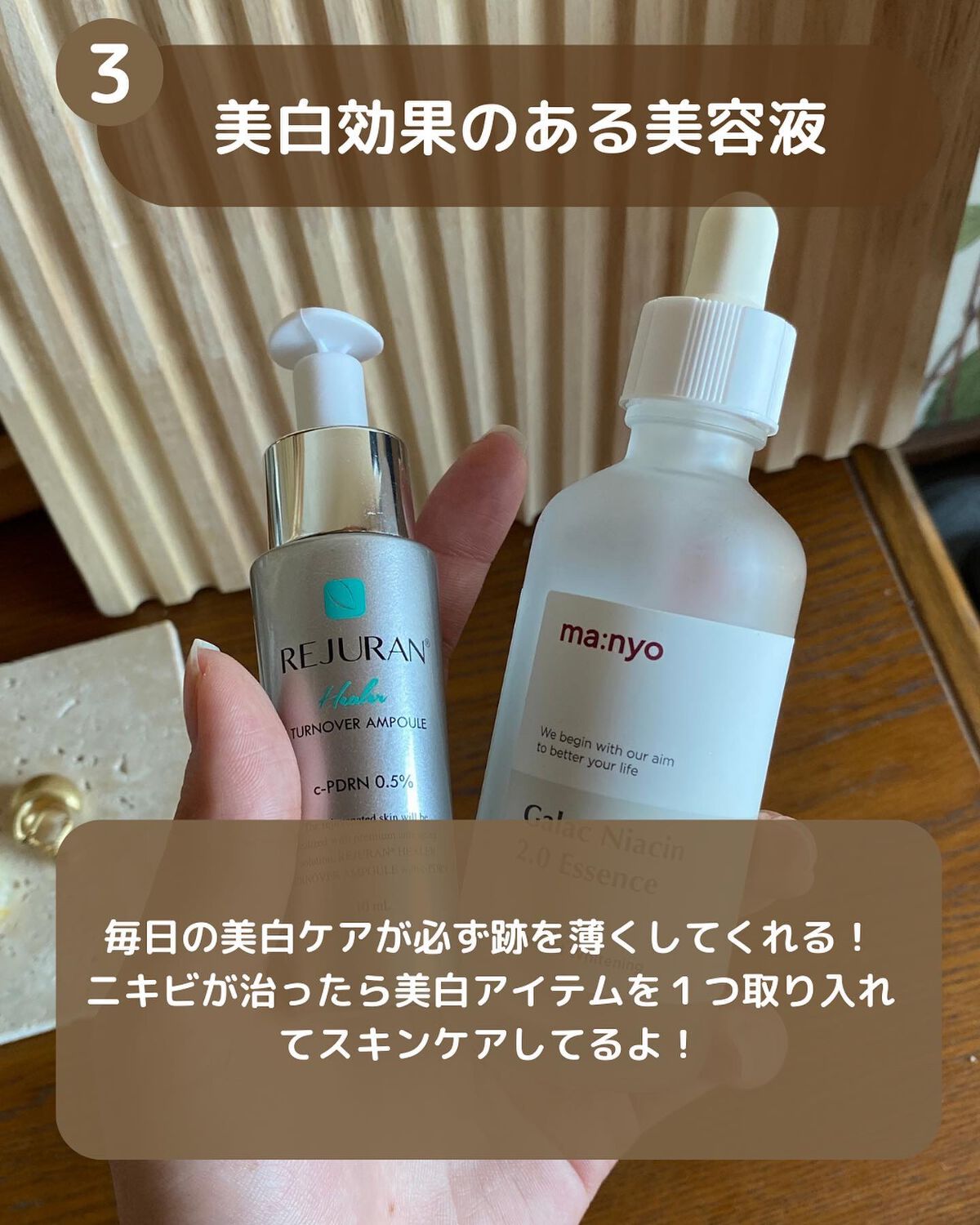 私は全然消えないニキビ跡にすごい悩まされていました🥲 紹介した中でもイニスフリーのレチノールシカは1番効果を感じました! 他の美容液ももちろん効果を感じたものなのでぜひ試して欲しいです✌🏻