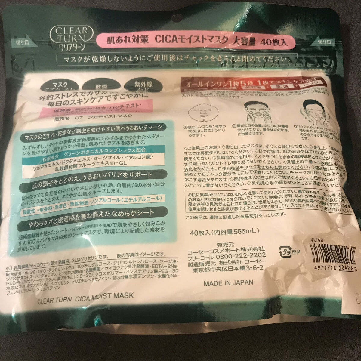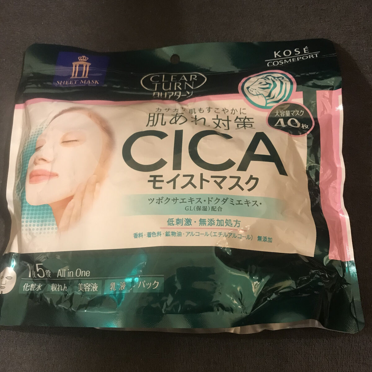 大容量のコスパ最強のパック❣️ 40枚入り 最近私は毎日朝と夜の1日2回使ってます! 1枚5役のオールインワン効果があるみたい (化粧水、収れん、美容液、乳液、パック) やっぱりちょっと高くてもVTのシカマスクを買いたいな🩷