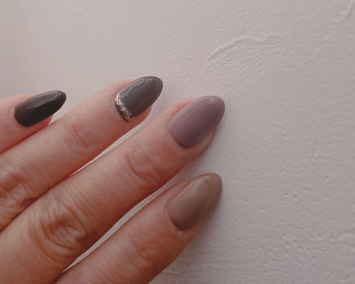 #m_beautyroom06です🌸セルフネイル-——————\グラデーション/ダイソーのブラウンレッドで簡単にグラデーションネイル💅♡シアー感のある色だから、グラデーションが作りやすい!なるべく縁で液は取ってからカスカス?に近いくらいで塗っ...