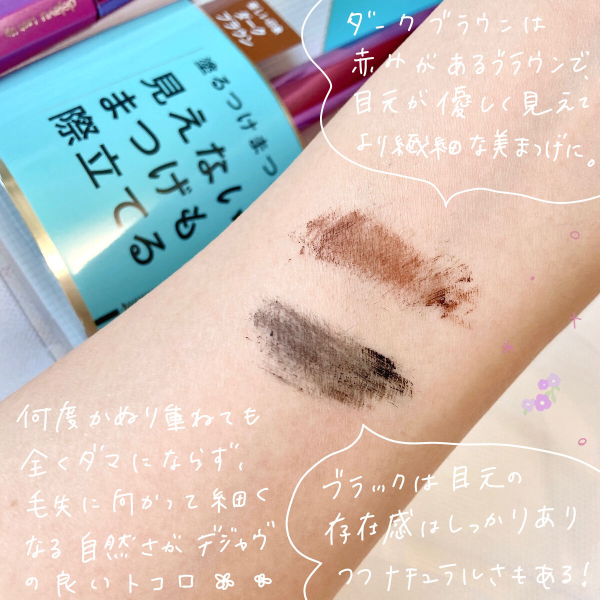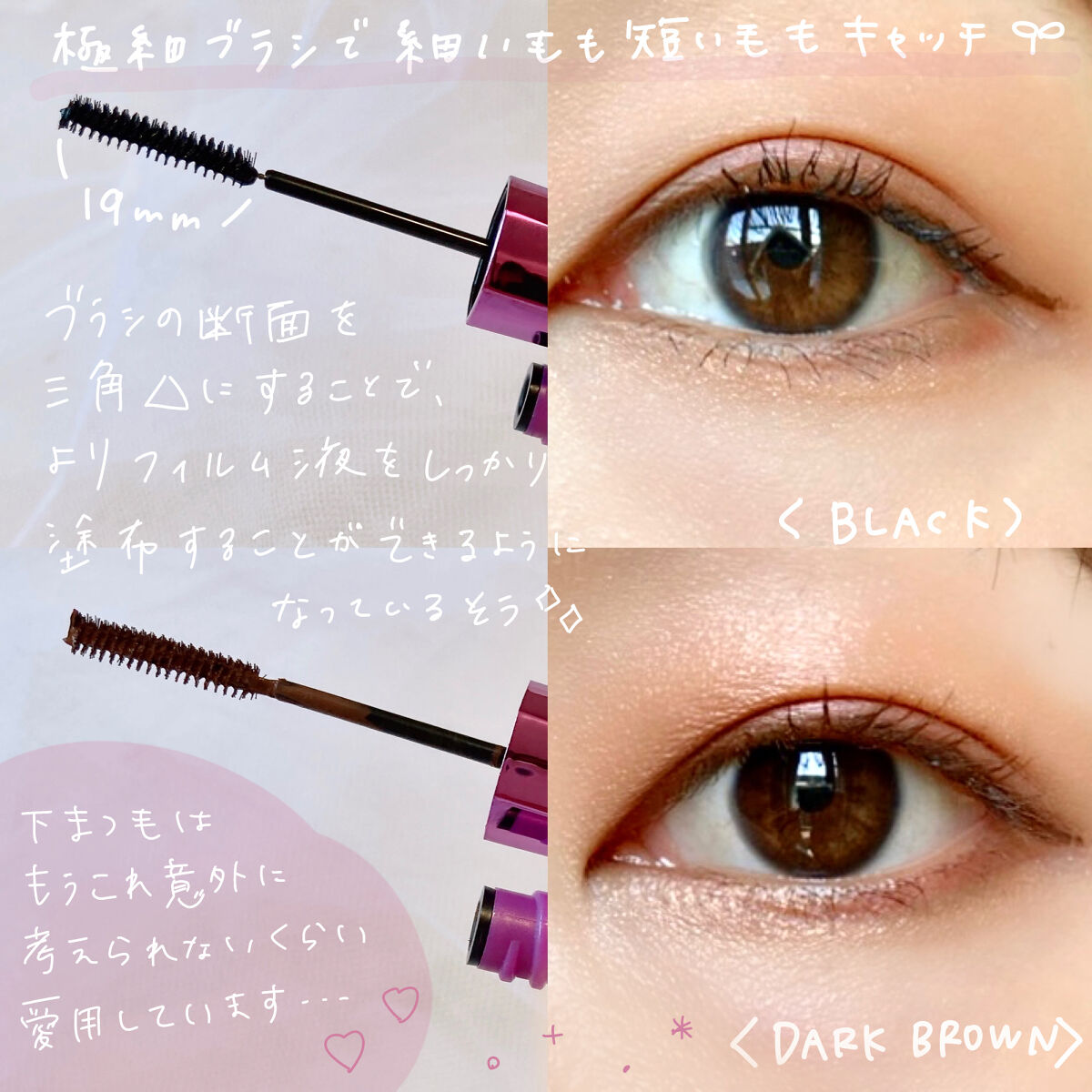自まつげをくっきり際だてて 時間が経ってもくすまないブラックカラー ホリデーシーズンにピッタリの限定色 メタリック質感のオレンジブラウン 1.5mmの超極細ブラシが塗りにくい目尻や目頭、短い下まつげもしっかりキャッチしてくれる塗りやすさに感動!✨