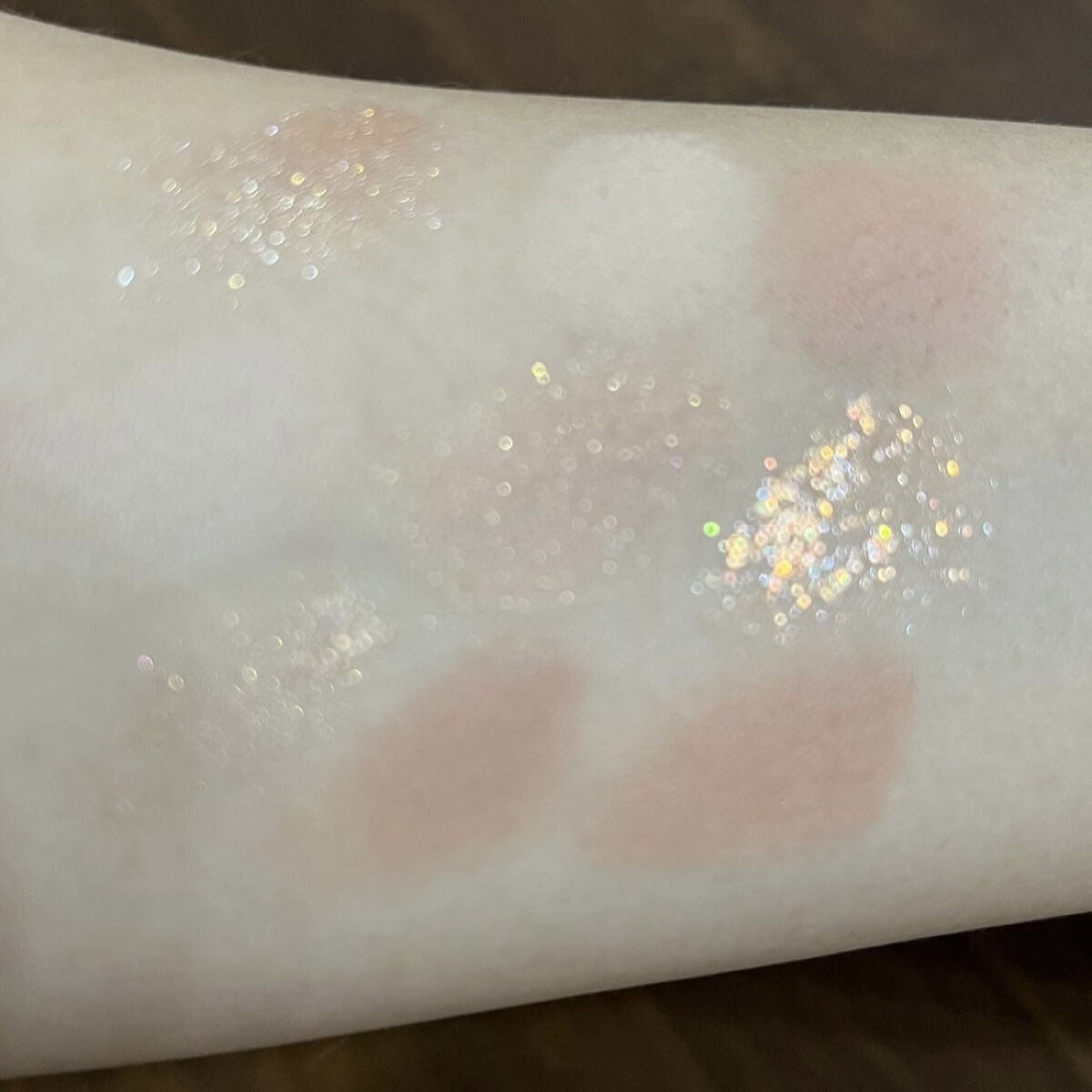 刷毛はスリムで束感があります。 とても速乾です✨ 色によって1度塗りだと、シアーだったりムラになりやすいものがあるので、好みで1〜2度塗りするといいかも🥰 09ユニコーンパール 11ロゼスパークル