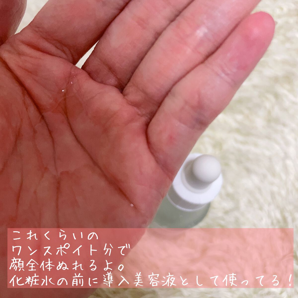 | 美容液だけどサラサラしていてすぐ肌に馴染む! 後のスキンケアに響かないし、ベタつかなくて良い♪ | 詳細を見る | |