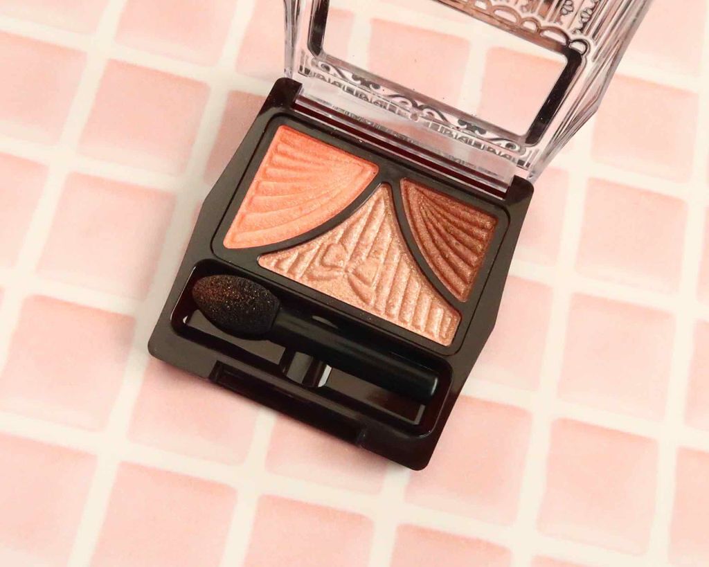 - パウダーなのにみずみずしい♥ 自然な立体感をつくりだす3色アイシャドウパレット 仕上げのコートで、ジューシー感&モチUP! メインカラー&ラインカラーはフィッティングオイル配合のしっとりパウダーで、 まぶたに吸いつくように溶け込み、ジューシーコートスフレで覆うことによって、 濡れたようにツヤめく愛されまぶたで透明感のある目元を演出します。