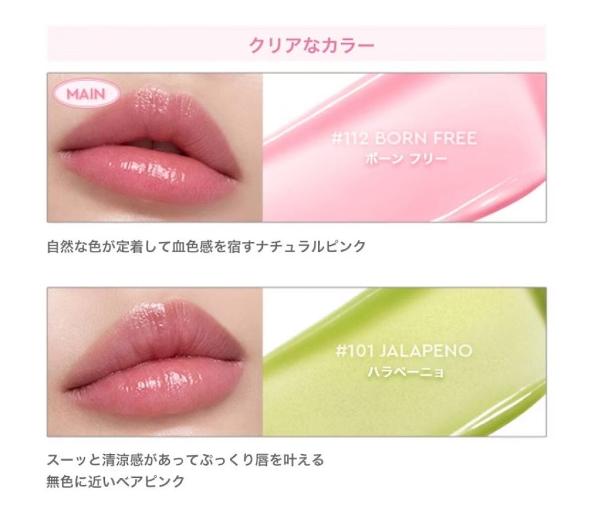 - 鮮やかなのにクリアでぷるんとした発色 翌日まで感じるうるおいが心地よい保湿カラーバーム ■唇にフィットする、鮮やかなのに透明感のある発色 クリアでぷるんとした発色が唇本来の色と調和し、リップバームでは珍しいユニークなカラー感を叶えます ソフトゲルワックステクノロジー特有のとろけるようになめらかになじむテクスチャーで、透明感のあるクリアな発色に鮮やかなカラー感を楽しめるカラーバームと、ほんのり自然なカラー感のティントバームの2種展開 ■翌日まで感じる、しっとりうるおう保湿力 保湿力が30時間*1続くリップバーム 植物由来のオイル*2とワックス*3配合でしっかりと保湿することで、ふっくらハリのある唇に ■クリーンフォーミュラ採用 8-FREE処方:動物性原料、鉱物油、タルク、ポリアクリルアミド、人工香料、イミダゾリジニル尿素、トリエタノールアミン、PEG不使用 人工香料を配合せず、植物由来の香り成分*4を配合 天然由来保湿成分配合( 水を含む88~94%配合) ※#101 ハラペーニョを除く