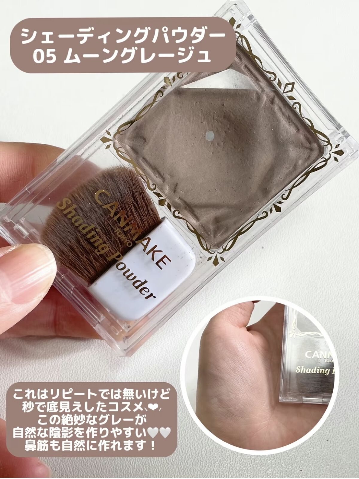 🌙〘キャンメイク〙殿堂入りコスメ!やっぱりこれしか勝たん!🎀⟡.·⎯⎯⎯⎯⎯⎯⎯⎯⎯⎯⎯⎯⟡.·キャンメイク✨シェーディングパウダー05ムーングレージュ¥748プチプラでリピしやすくて有難いし茶色だとシェーディング入れました!!!!感が出過ぎ...