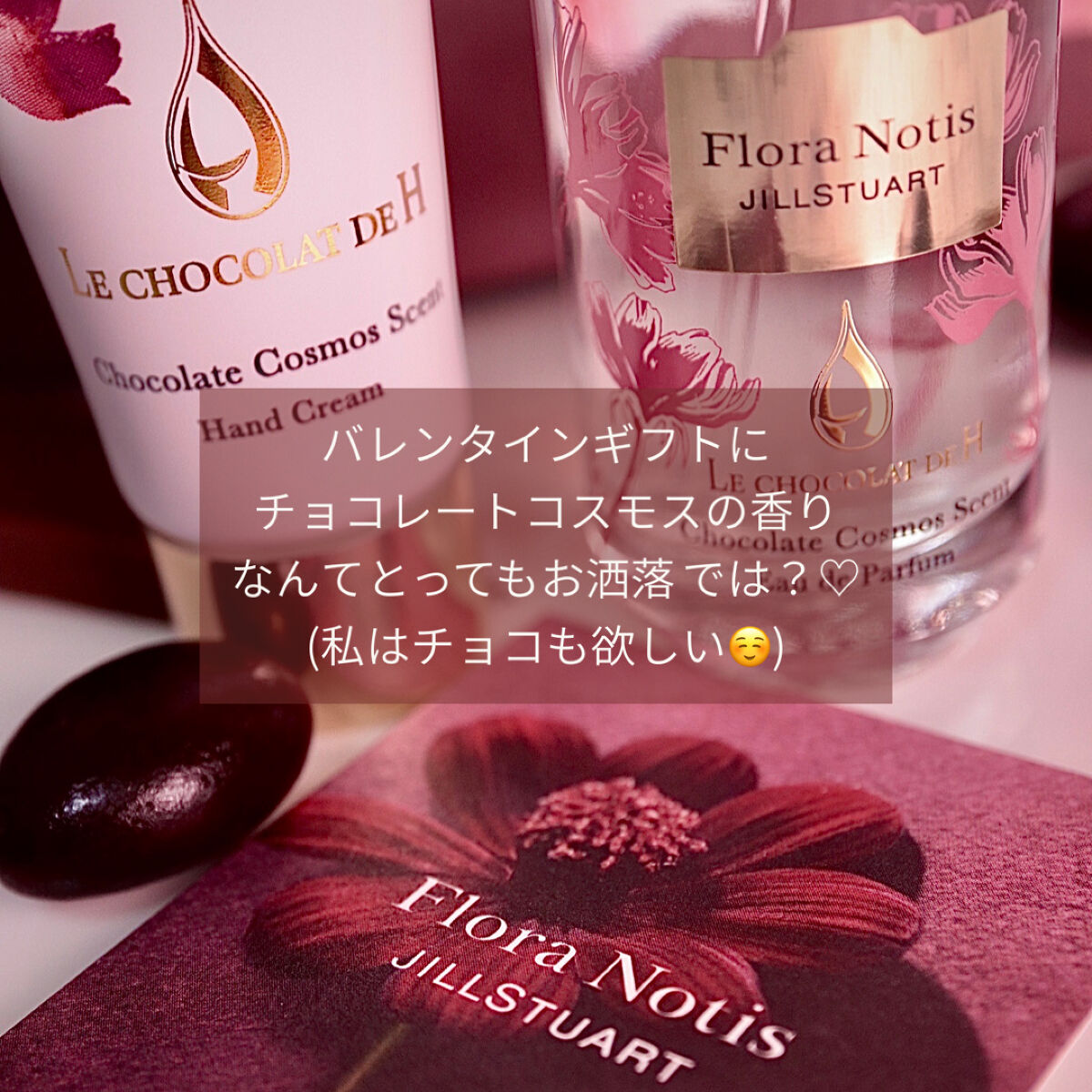 甘くてほろ苦い大人な香りのチョコレートコスモスという花があるって知ってた?ほんのりチョコレートの香りのするチョコレート色のキク科コスモス属のお花らしい♪ 何度も薫りたくなる、魅力的な香りで華やかだけど優しさもあるフェミニンな香り♪これは、バレンタインデートにぴったりな香り♡ フローラルグルマンでとても陽気な香り♪恋人と過ごすバレンタインと言うより、友達とワイワイしながら友チョコを交換して楽しんでいる情景が思い浮かぶ♡