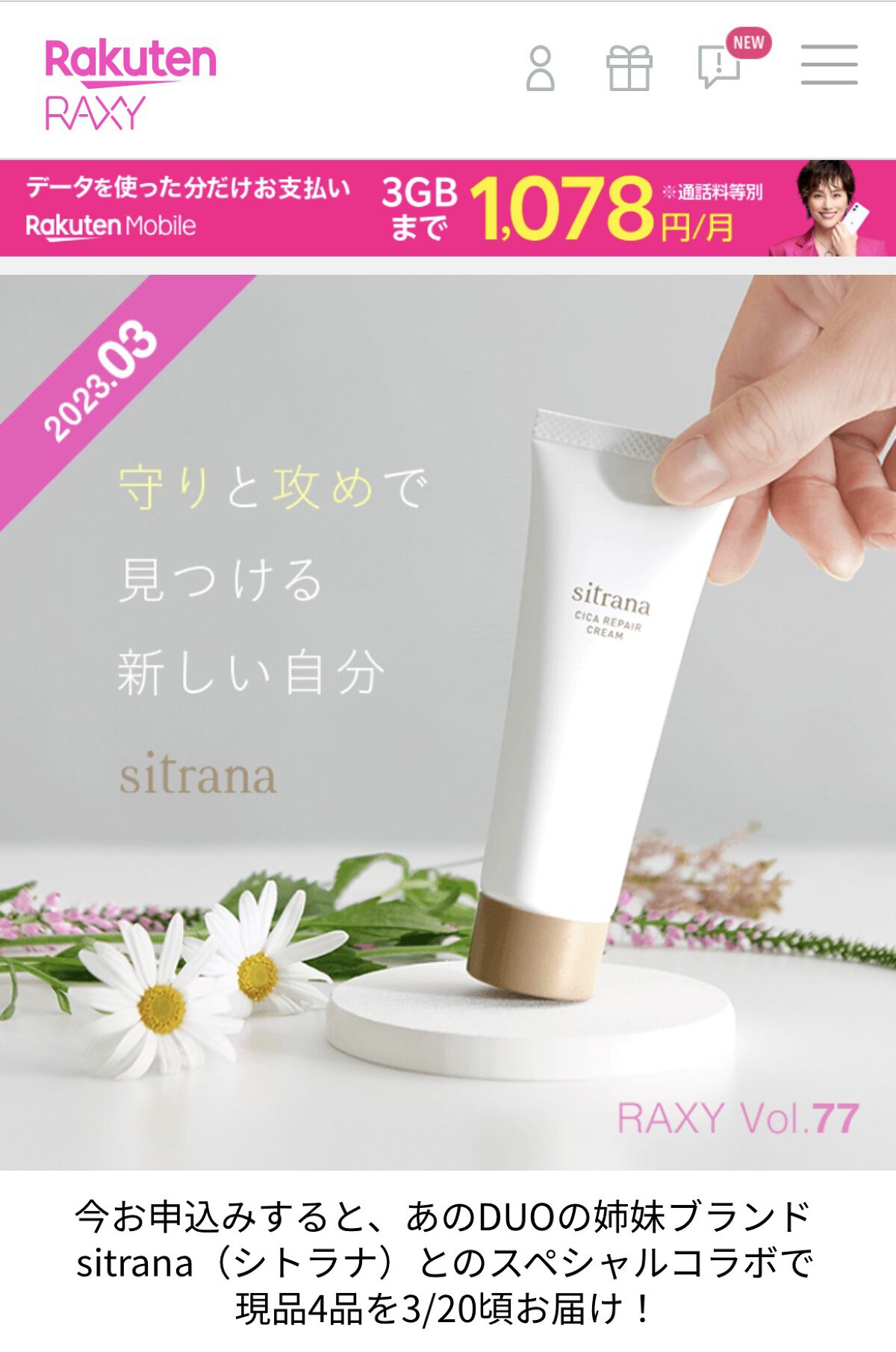 コスメのサブスクボックスってめちゃくちゃときめきますよね、、!!! 自分では手に取らないものとの巡り合わせが好きすぎる! 予告通り今月号は"コスメ狂いが作った、RAXY担当者泣かせボックス"というテーマで大人気美容系YouTuberのサラさんとのコラボボックス! 私が入っていたのはこのアイテム達! いかがでしょうか??今回はどのコスメも近くのドラッグストアでも買える有名メーカーさんのが多かったですね、、! 来月は厳選されたマダガスカル産のCICAにこだわったsitrana(シトラナ)とのスペシャルコラボボックス!春の悩みにアプローチする豪華な現品4点で、肌も心も軽やかになれるみたい!