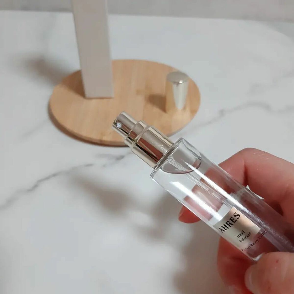 アルコール*が約62.2%配合されているハンドミストです。 ただその分高級感はあります✨ 吹きかけると最初はアルコールの鼻にツンとくる感じがありますがほんのりとウッディ系やスパイスを感じる重めで落ち着いた香りがします🥰 甘さはほぼなしで手に直接かけるので香りはほんのり程度になっているのかも🤔 香りをメインに楽しみたい方には物足りないかもしれませんがお値段的にもお手頃なのでちょっとしたプレゼントにおすすめです🥰