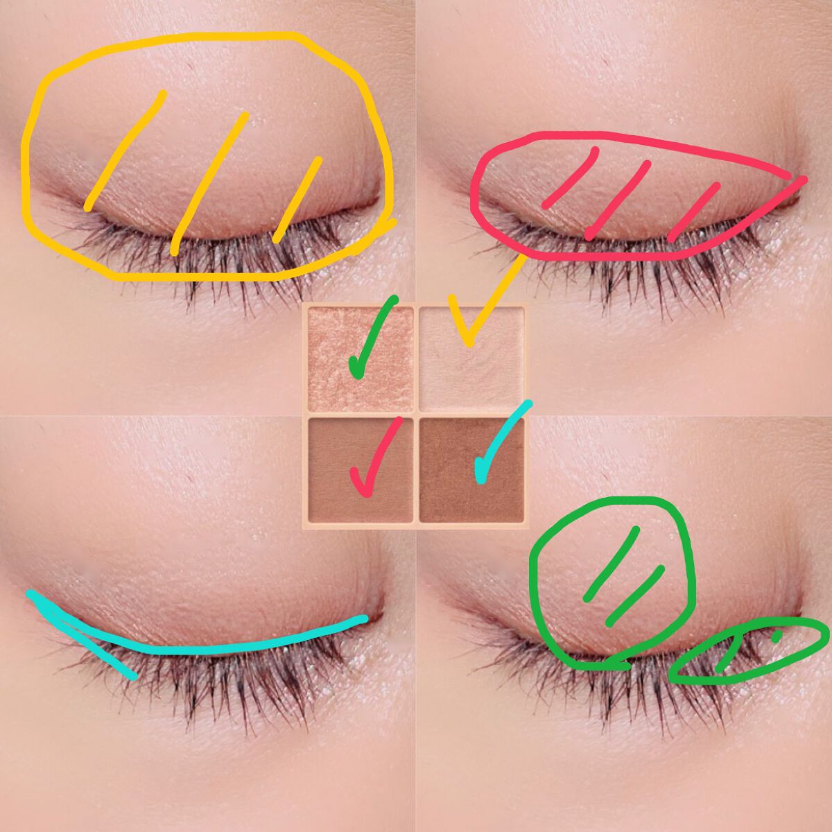 - ラメ・パール・マット3質感の4色アイシャドウ。 肌馴染みの良いベージュを基調としたカラー。ラメ・パール・マットの3質感を重ねて、自然にまぶたを強調し奥行のある大きな目元へ。 しっとり溶け込むような柔らかなパウダーなので、スルスル伸びてまぶたにピタッと密着。保湿成分(スクワラン・ホホバ種子油)配合。