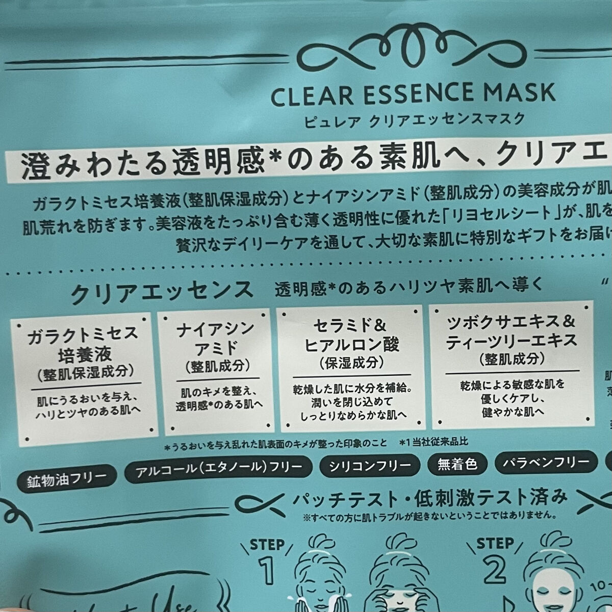 美容液ひたひたでシートは薄めで肌に密着しやすい! 放置時間は10~15分とちょっと長めかな? ずっと気になってたパック! #ピュレア #クリアエッセンスマスク #パック #今日のパック #私の推し成分レポ