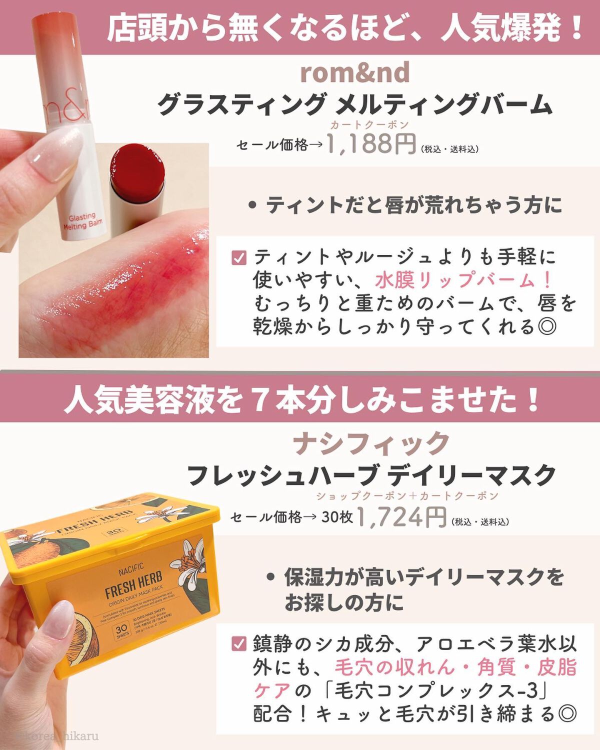 今回は、今日韓で人気上位なプチプラ優秀ファンデを8つまとめてみました💪 先日「狙っている」の投稿でもご紹介した、TIRTIRの赤も早速PLAZAでゲットして使ってみました!! 実際に検証した画像も載せているので、お買い物前の参考になれば嬉しいです🥺💕 来週からメガ割がはじまりますので、皆さん一緒に楽しみましょうね😍❤️🔥 このアカウントでは、韓国スキンケアを中心に、日本のプチプラコスメなどもレビューしています🌷 実際にじっくり使ってみて、良かったものだけをご紹介✨