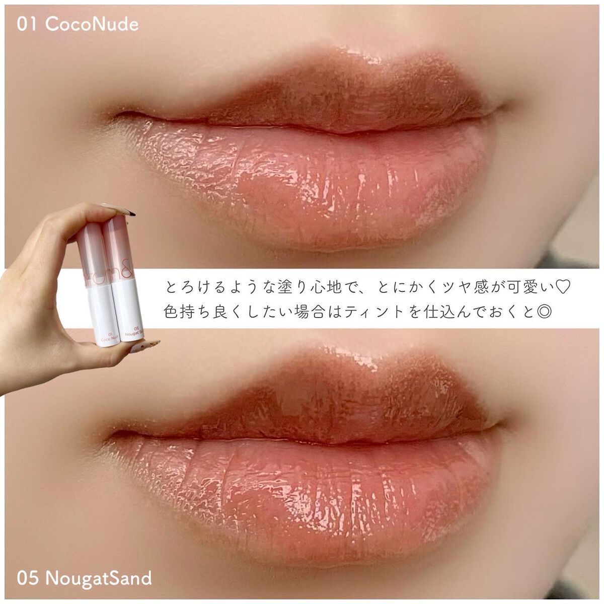 カワイイrom&nd合わせ🍇🥥を見つけてしまった🥹グラスティングメルティングバーム01を塗った上にジューシーラスティングティントの25を塗るととってもかわいい😆💕ザ・イエベカラーとザ・ブルベカラー、意外と合う✨✨🤍 🤍 🤍 🤍 🤍🥥rom&n...