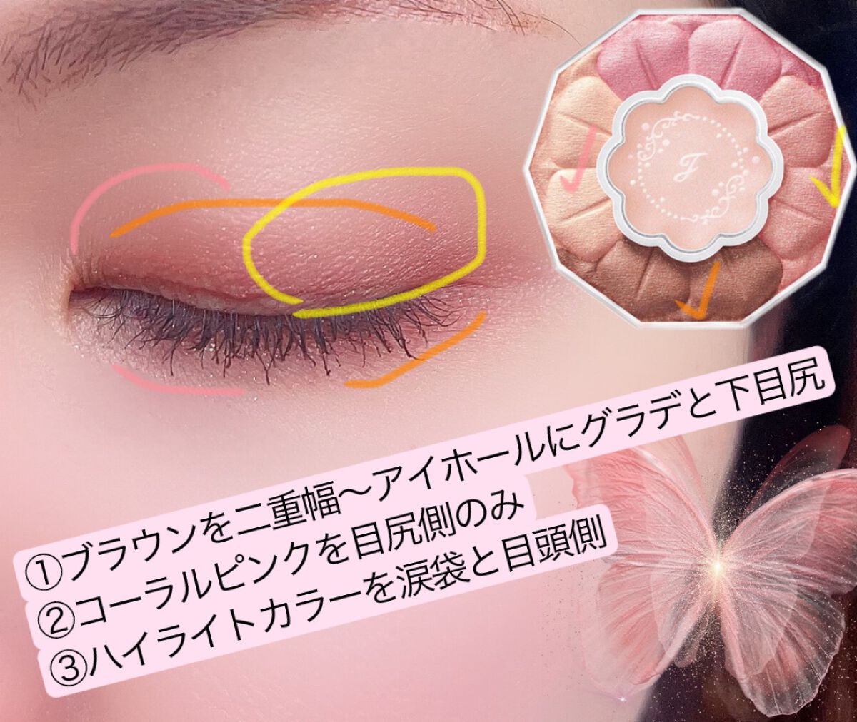 意外と見た目より使いやすくてびっくり! たぶん2ndがブルベ冬のイエベさんなら使えるかと思います…! 購入時お話したBAさんにオススメされたのは、下段の左、薄いピンクをアイホール全体にまず塗ってから、その隣のラベンダーを塗ると馴染みがよくなるのでオススメとのことです✨ パープルの使い方はBAさんに教えて頂いた方法です(`・ω・´)✨ かなり悩んだのですがほんと購入してよかった…!