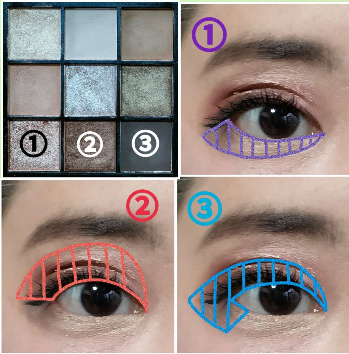 アイシャドウパレットは、URGLAM UR GLAMBLOOMING EYE COLOR PALETTE 02を、使用しました。 マスカラは、MAYBELLINE NEW YORK コロッサルボリュームエクスプレスを、まつ毛全体にまんべんなく塗ります。 リップは、wet 'n' wild MegaLast Lip Colorを、唇全体にまんべんなく塗ります。