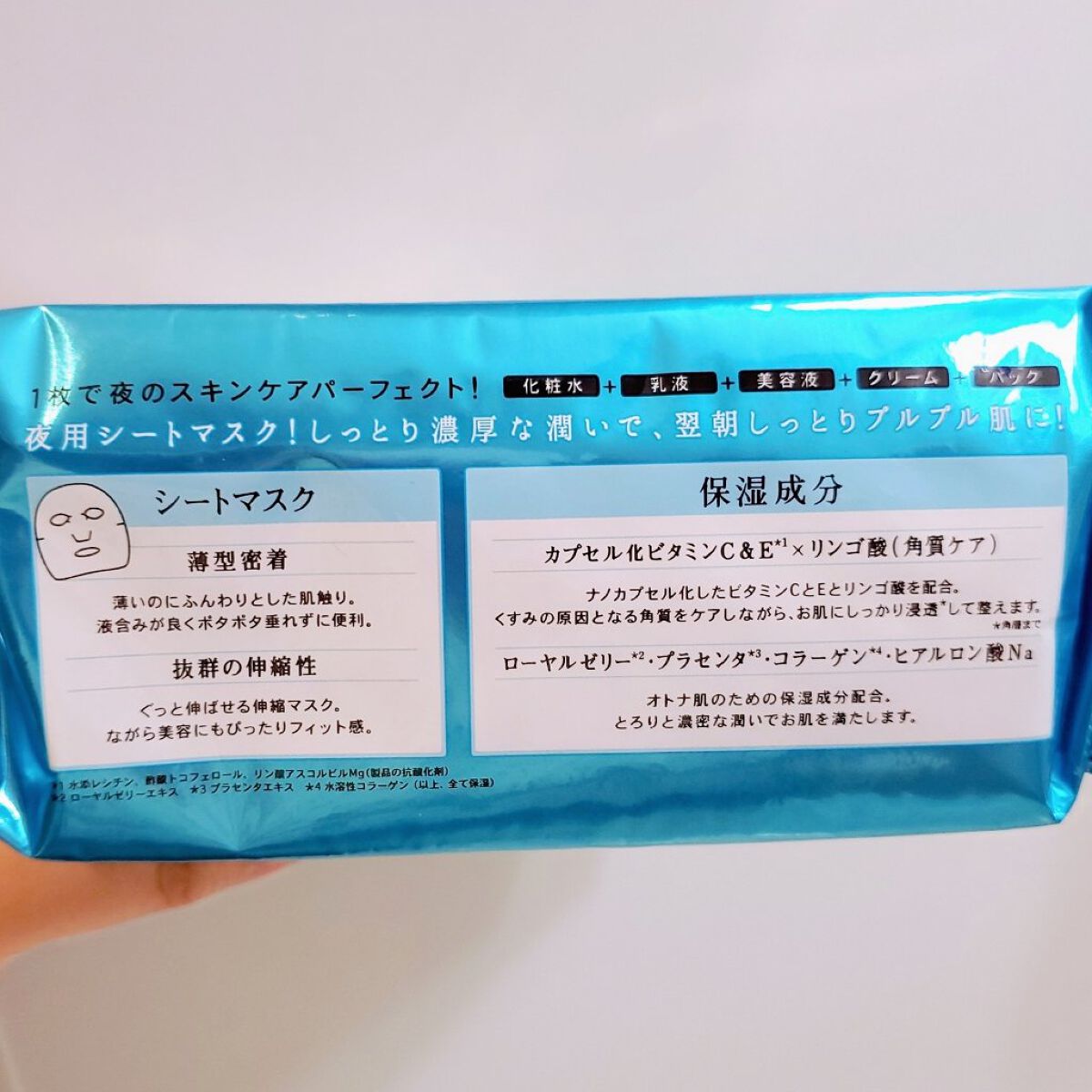 ※旧品※2025年使用品シートマスク・商品名サボリーノオトナプラス 夜用チャージフルマスクホワイト5枚入り49mL 夜用チャージフルマスク5枚入り48mL・値段定価495円(250円で購入)・購入場所COOP・評価★★☆☆☆アルコール、メント...