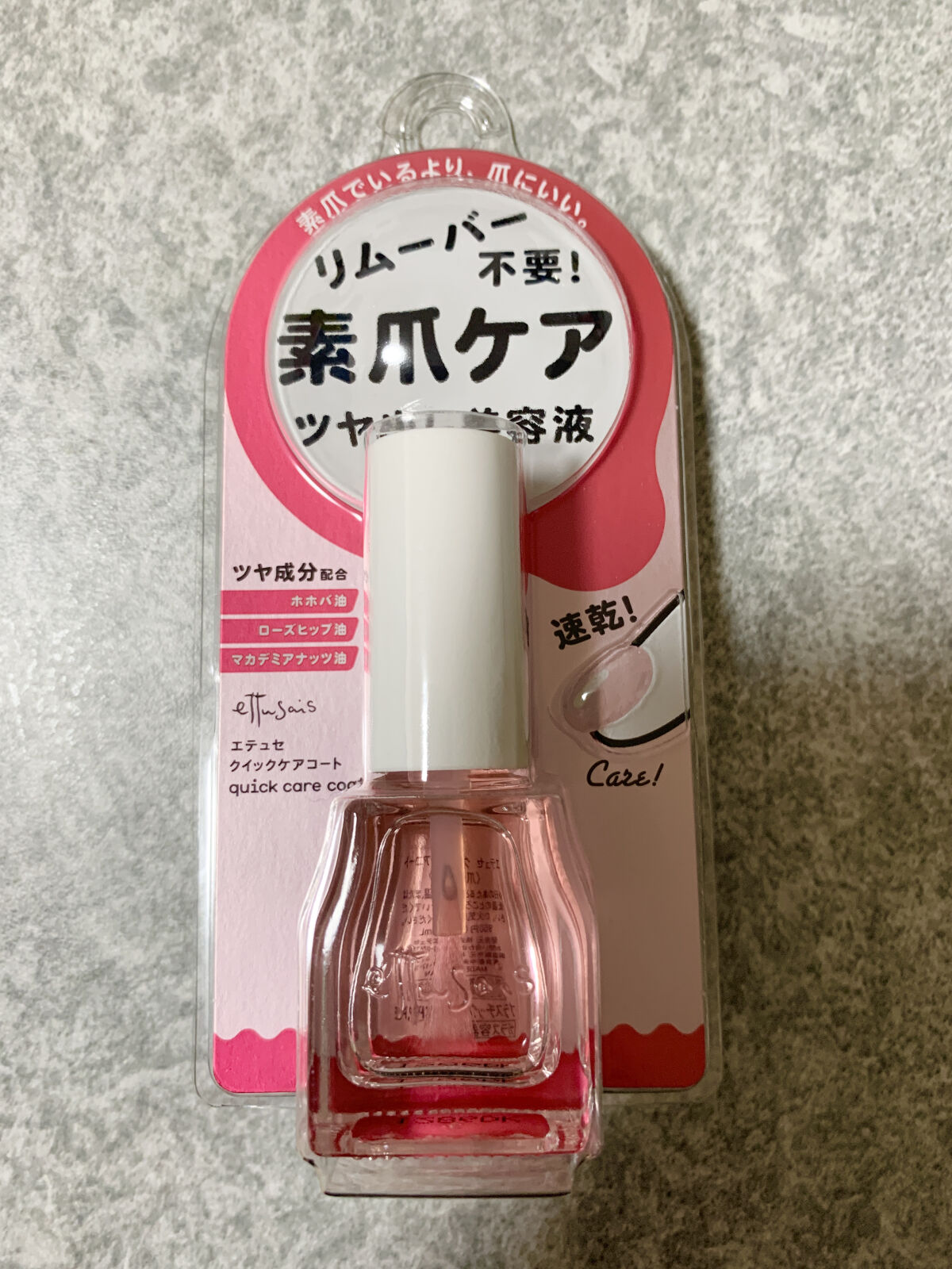 1度塗りで自然なツヤが出て、爪を補強してくれます。 乾燥による縦線が消えて素爪が綺麗に見えるので、とても良いです。 リムーバー不要なのも嬉しいポイントです♡ 2〜3日でツヤが無くなってくるのでその度に塗り重ねていますが、速乾なので塗る作業が苦にならないです。 仕上がりがナチュラルなので、職場や学校がマニキュアNGな方にピッタリな商品だと思います!