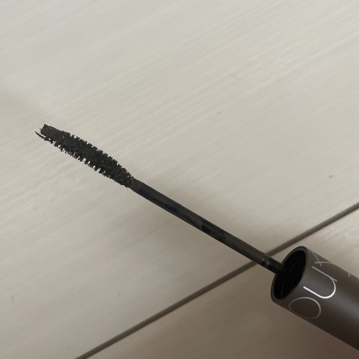 ずっとバズっているのを見ていて気になってはいたのですが、愛用しているマスカラがあったため何となくスルーしていたマスカラだったので今回お試し出来て良かったです︎🫶 1番の特徴はコームだと思いますが、二つに分かれたようになっていて一つ一つの突起が細かく、下まつげにも塗りやすかったです! カラーは漆黒というよりは若干透け感のあるブラックかなという印象でした🖤 仕上がりはかなりバサっとまつ毛が広がるようなイメージです!最近人気の韓国アイドルのような、いわゆる束感まつ毛という感じでなく、とにかく孔雀の羽のようにバサッと存在感のあるまつ毛になります! お湯では落ちませんが、マスカラリムーバーやポイントメイクのリムーバーを使えば綺麗に落ちます🙆♀️