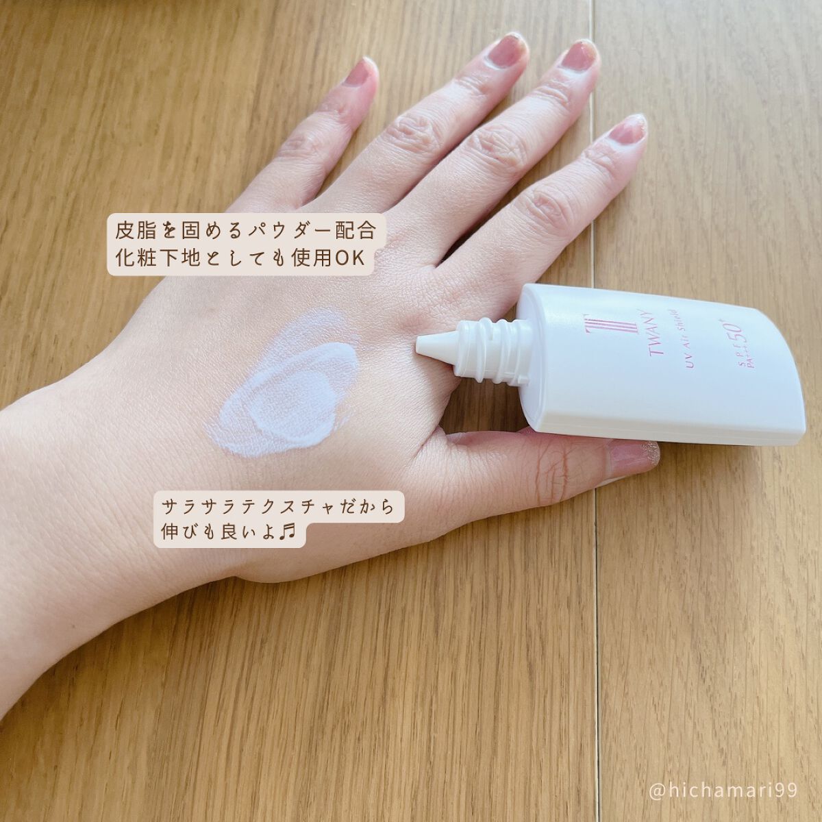 使う前に必ず上下に何回か容器を振ってから使います👍🏻 白いミルクタイプで、スッとのびて塗りやすい💙 ただトーンアップ効果があり、白くなるので、お肌の色によっては白浮きするかも🤔 つけたことを忘れるくらい、とっても軽いつけ心地なので、メイク下地として使用しています💁🏻♀️ 皮脂崩れしにくいところと、フリクションプルーフで、こすれても取れにくいのでマスク使用中の紫外線対策にもぴったり🌟 機能性もすごく良かったです💯