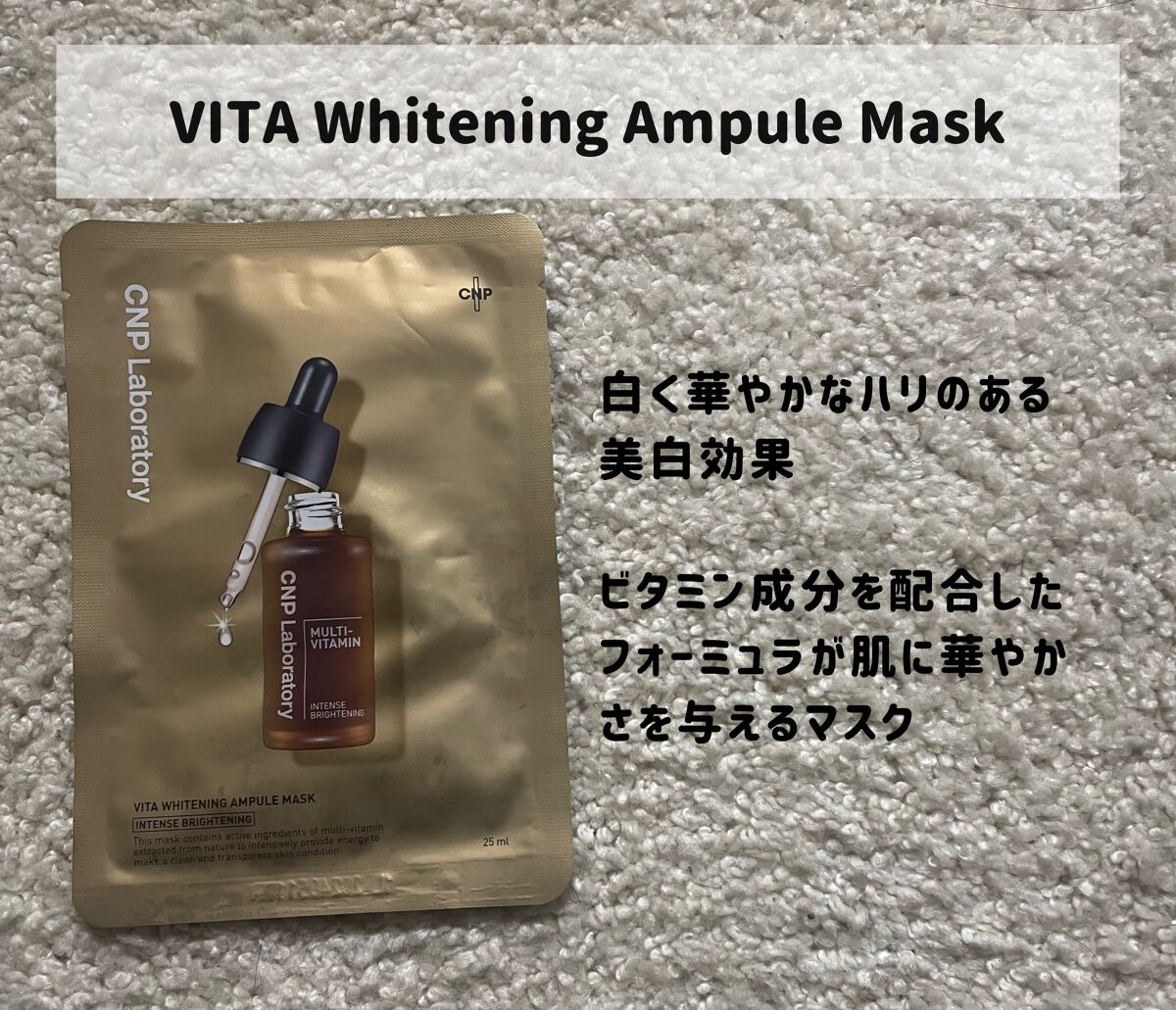 このCNPのパック、Qoo10のメガ割で購入したのですが、安いのに効果が最強に良すぎて4回もリピしています!笑 1回使用しただけで次の日、肌の違いがすぐに実感できます。 パックどれがいいんだろうって迷ってる人はまずこれ使ってみてほしいです。お気に入りすぎて友達にも勧めたのですが凄く気に入っていました🫶🏻 全部好きですが、個人的に4種類の中で一番良かったのは茶色のVITA Whitening Ampule Maskです! CNPのパックはリニューアルしたみたいで、ピンク色のVITA-B Ampule Maskは製造中止と書かれていて、現在売っていない可能性が高いので注意です⚠️