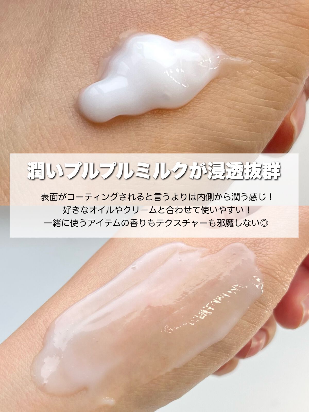 【エッセンスインヘアミルク】ミルクタイプの洗い流さないトリートメント🤍濡れた髪、乾いた髪どちらにも使えるヘアミルクです!軽めのテクスチャーで馴染みが早く、馴染ませた後もベタつかないのがいいです😌タオルドライ後の髪に使うと、ドライヤーの熱を味方...
