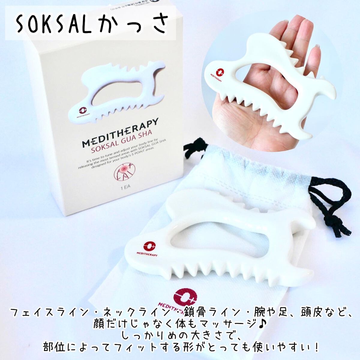 | 指のような大きめ突起と、ミニサイズの8つの突起で、フェイスラインやボディに幅広く使える取っ手付きかっさ。 | 詳細を見る | |||