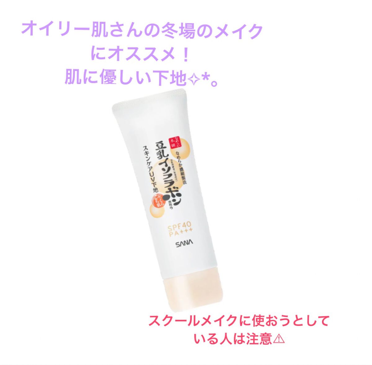 - <スキンケアUV下地> 豆乳のスキンケアUV下地。低刺激&ノンケミカル(紫外線吸収剤不使用)。肌色補正(メイク効果による)&皮脂崩れ防止。化粧水・美容液・乳液・クリーム・UVカット・化粧下地の1本6役。SPF40・PA+++。