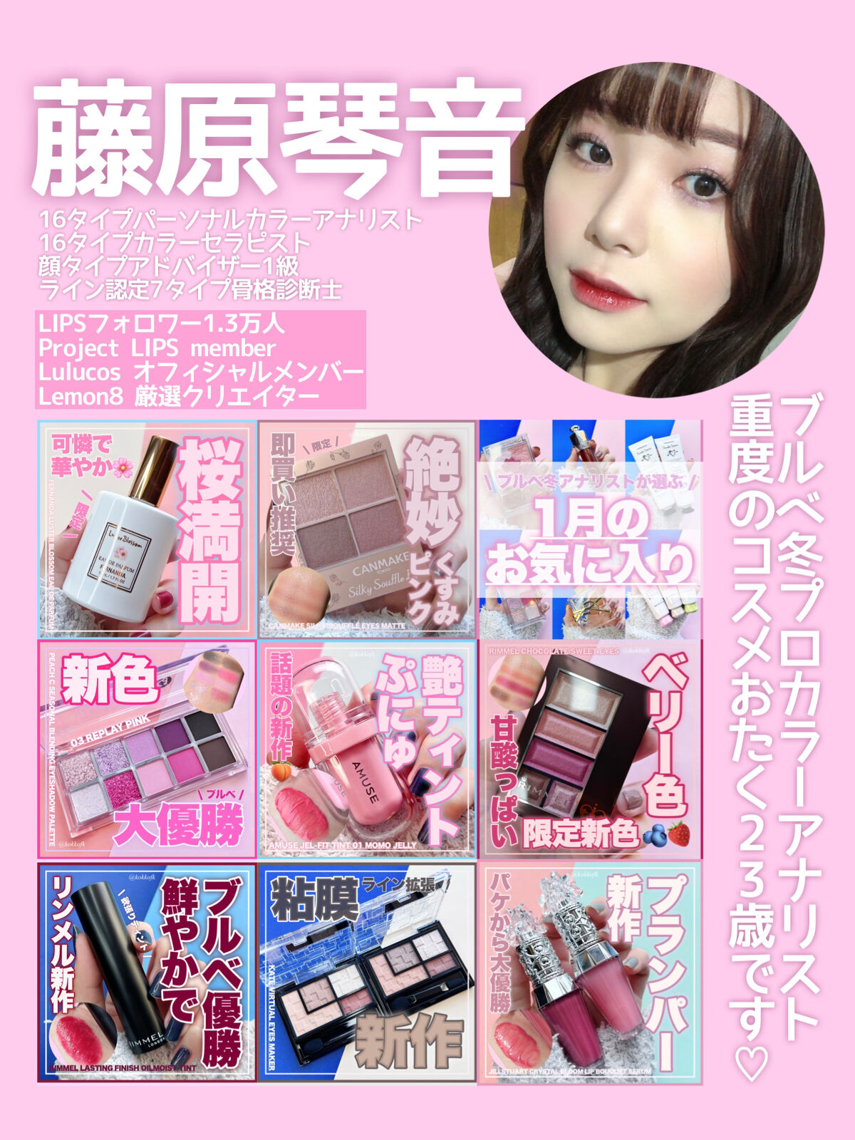 薄く唇に密着する新作マットティント。 マットなのにかなりしっとりとしていて 乾燥を感じなくてびっくりでした! 一気にこなれ感が出るトレンドカラーです♡ やや青みの華やかローズレッド 公式画像より鮮やかめに感じました。 やや黄みの強くて深いオレンジレッド ストロングオータムに超激推しです! やや黄みの非常に深く濃いダークブラウン ディープオータムに激推しです! かわいい雰囲気になれるピンクリップです♡ やや青みの柔らかいくすみピンクベージュ ミューテッドサマーにおすすめです! 青みの落ち着いたローズピンク やや青みのとても鮮やかなビビッドレッド ビビッドウィンターに特におすすめ! 既存マットティントよりもさらに ふわふわなマット感が魅力のリップで、 軽くティッシュオフしてもほとんど落ちない◎ マスクにも激推しのティントなので、 ぜひ皆さんもチェックしてみてね❤︎