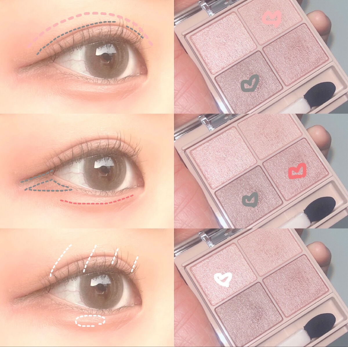 - シルキースフレアイズの姉妹品♡ 肌に溶け込むような透けマットシャドウ 透け感のある柔らかい仕上がりになるマット3色と、透け発色の繊細ラメ1色のパレットシャドウ♡ 完全マットアイや、ラメ×マットアイなど、メイクのパターンを楽しみましょう!