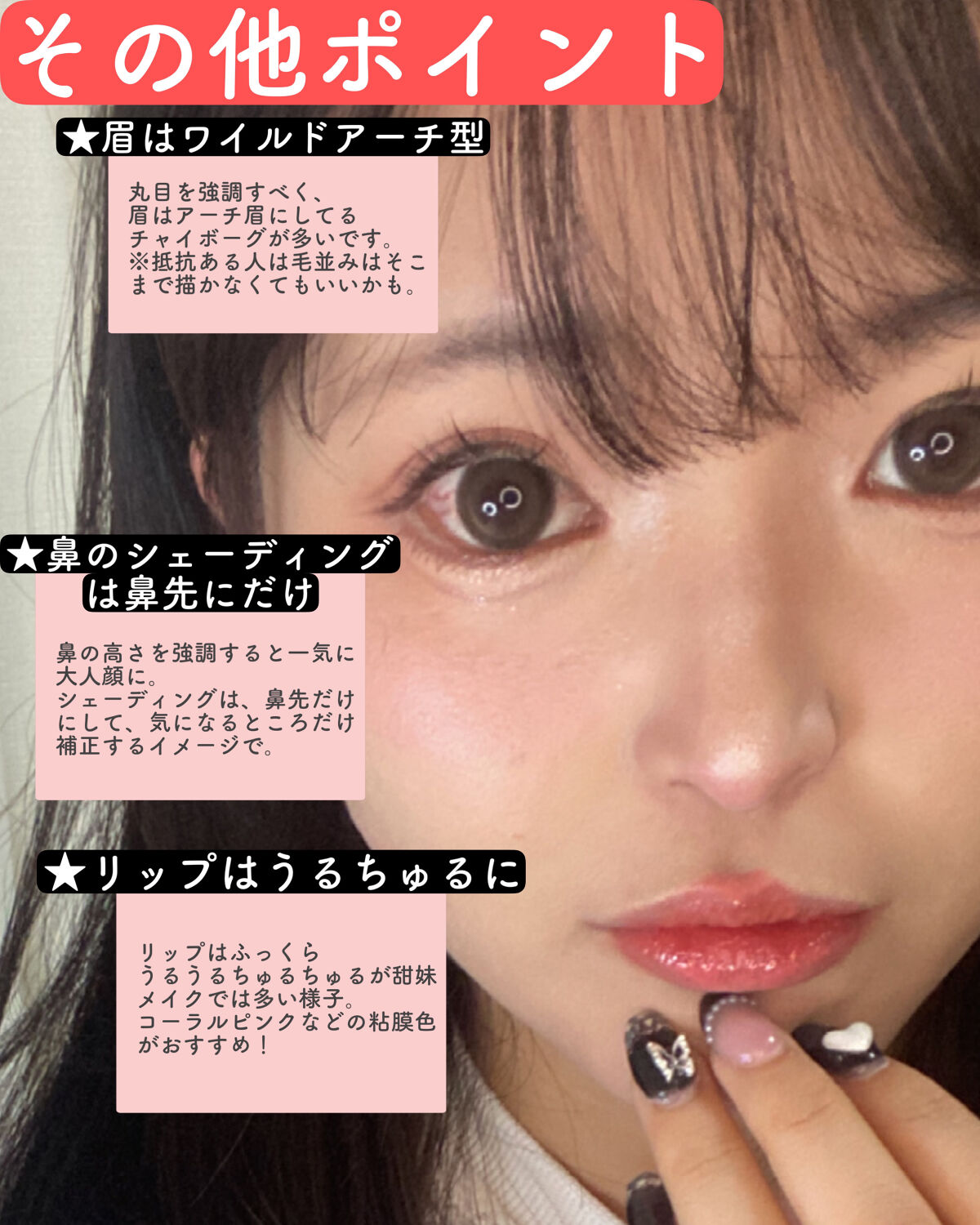 元々わたしは鼻筋が低く、鼻先がまん丸な いわゆるのっぺり団子っ鼻です🥲目指してる鼻と真逆。。笑 でもね!ポジティブに考えると 平たければ平たいほど陰影がつくので! トリックアート作りやすいと思ってます!笑 鼻の形は個人差あるので、これ通りにしてみて、 同じ鼻が作れるとは限りませんが、 私が大事にしているポイントは なりたい鼻の陰影と、自分の鼻の陰影の違いを 理解すること。です。 どこに光が当たっていて、 どこの部位がいちばん高さがない部位なのか どこの部分が足りなくて どこの部分が無い部分なのか 鼻のつけ根はどこから始まるのか なりたい鼻に近い人の画像と、自分の鼻を比較しながらシェーディングとハイライトは入れています。 団子っ鼻に悩んでる方、浮腫んですぐ鼻が膨らむ方! 根本的な解決にはならないけど メイクで印象は変えられます! 是非お試し下さい🙇♀️