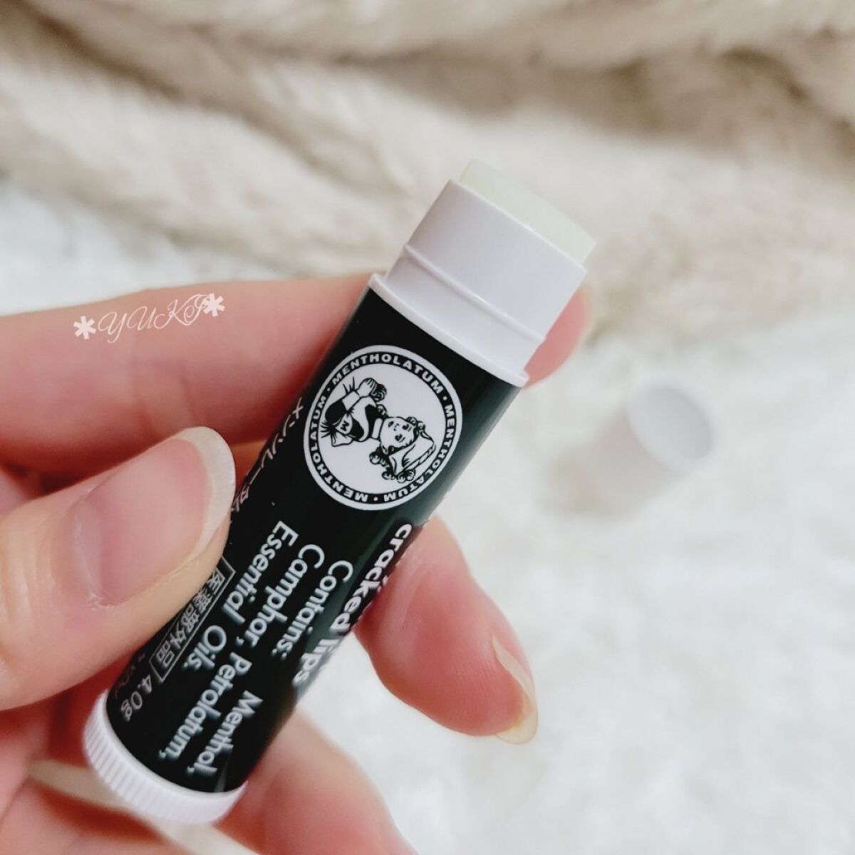 - 唇の表面をおおって風や寒さから唇を守り、荒れ・乾燥を防ぎます。またメントールやカンフルの働きで、唇に爽快感を与えるのが特長です。