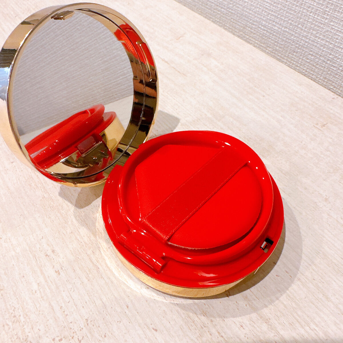 ヴァレンティノGOクッションSPF50+PA+++ パケの高級感とパケの可愛さ♥️持ち歩き決定ですね✨ みずみずしく、のびもいいので使いやすかったです😊カラーは少し明るめでした❗ 他のカラーを試したいです😉 さすがにマスクではよれるので、トナーパッドなどで少しオフして、ポンポンの簡単なお直しにもむいています😃