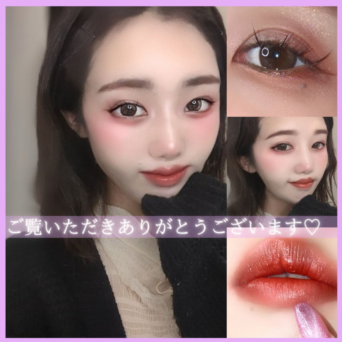 特にした三つのカラーはこっくり濃厚ベリーカラーで上品なグラーデーションができます🫶 真ん中の鮮やかプラムピンクは目元や目頭のアクセントに入れると個性的かつかわいいピンクメイクになります✨ 右上のピンク多色ラメはほかの大人っぽい色味に対して逆に美少女感ただよう配色でまたズルいです……キュンとしちゃう…… 特に私はアイホール全体ではなくて目頭にだけ入れることで、少なめのラメでかつ顔全体を鮮やかにすることを意識しました! そして……誰かやってるひといるかな?下粘膜3色グラデ法 目頭赤で潤んだ目、暗めカラーで中顔面短縮、締め色で目幅拡張、全て盛り込んでおります…… 是非皆さんやってみて下さい🫶