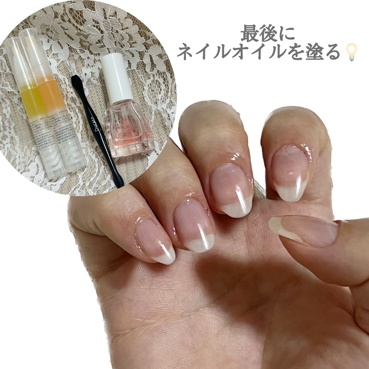 このネイルケアルーティンで、かなり綺麗な指先に見えると思います。 ネイルをお店でしてもらうと割と高いお金がかかるので、私は自分でケアを頑張っています☺️ 甘皮除去…私は結構好きで、するすると取れるのが快感です😂