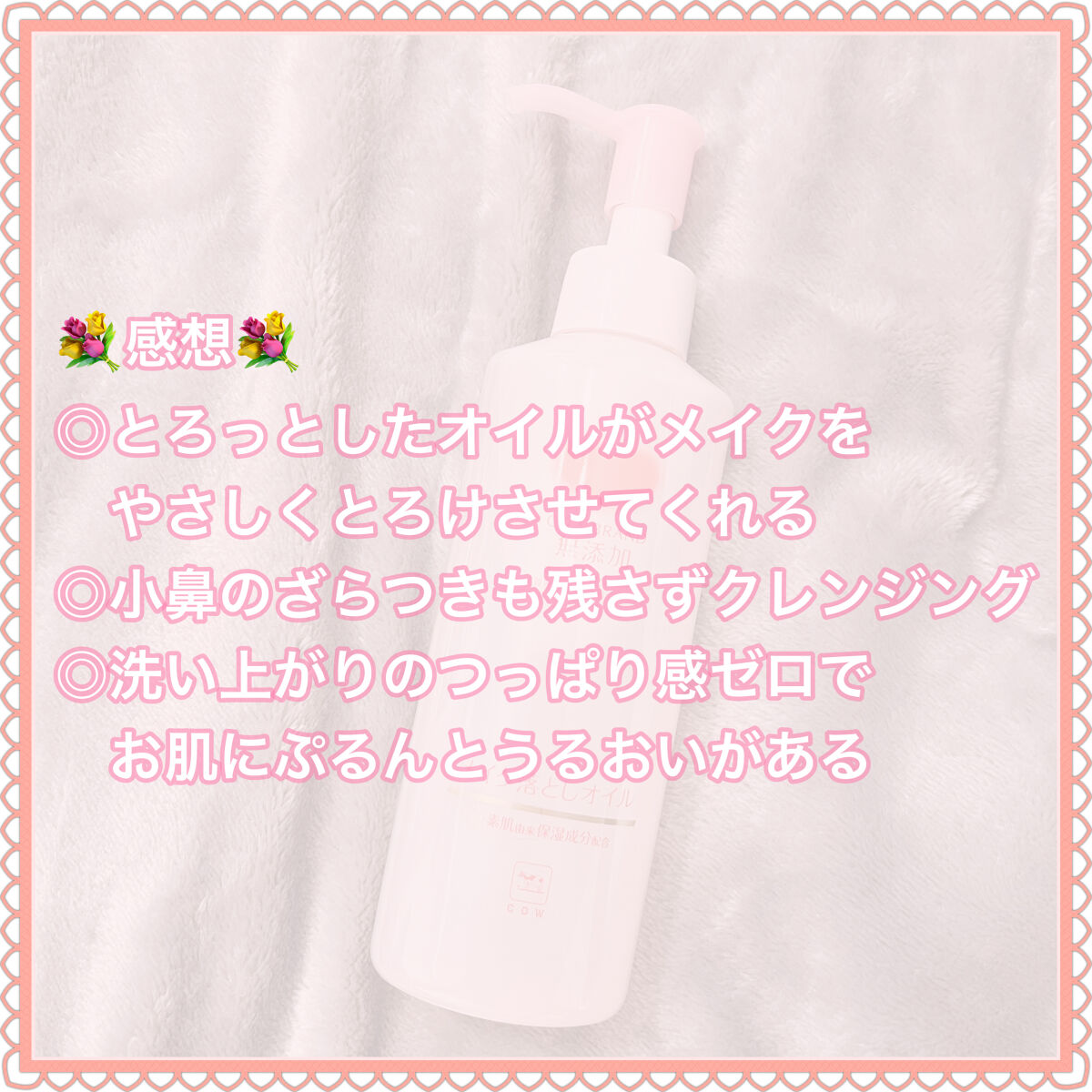 カウブランド無添加さまからいただきました無添加・低刺激処方でデリケートなお肌にも使えちゃう、カウブランド無添加さんのメイク落としオイルを使ってみました♡比較的さらりとしたテクスチャーのオイルはしゃばしゃばしすぎていない程よいクッション感で、し...