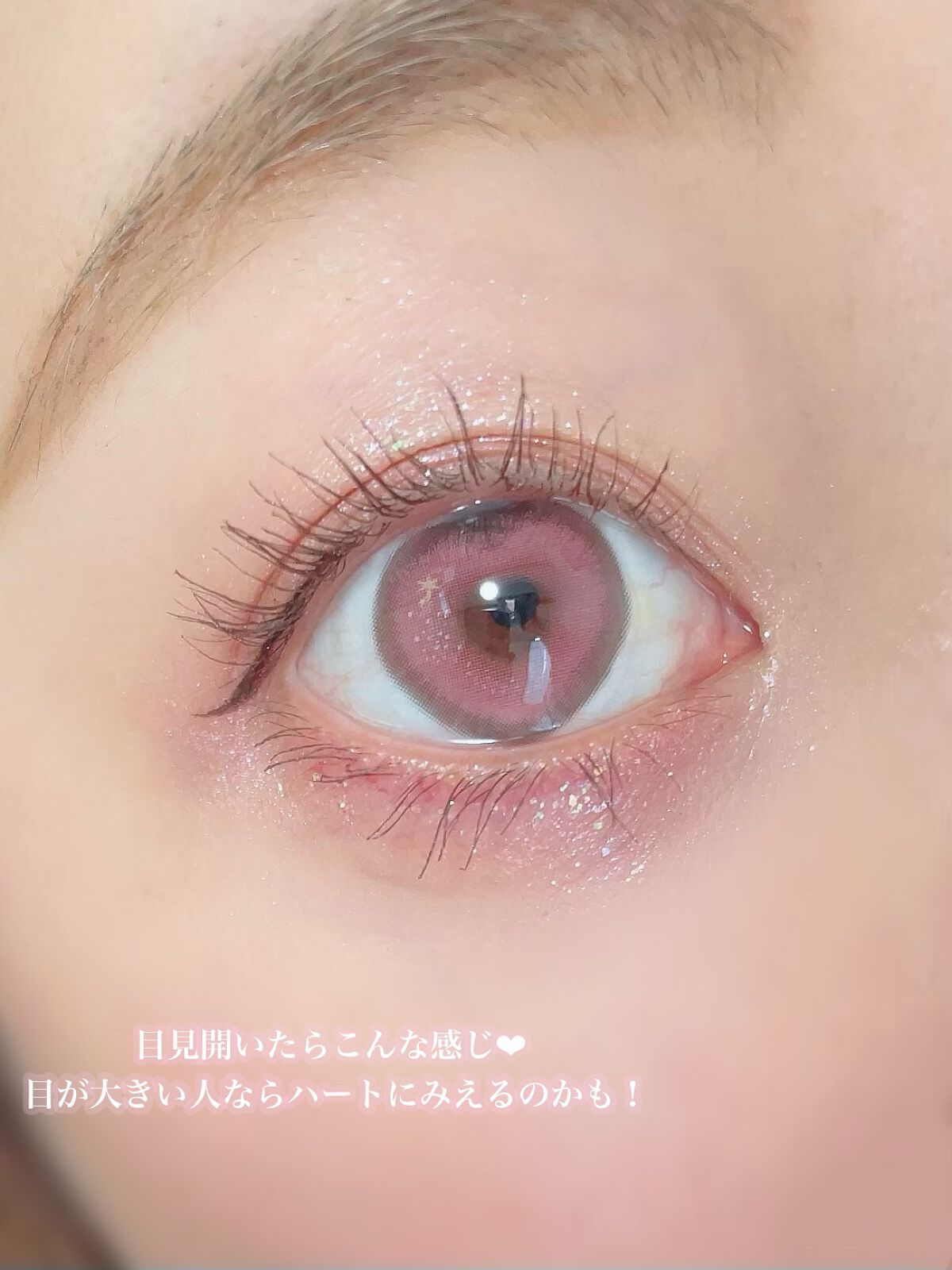 シマーアッシュベースにキューピッドピンクのハートデザインが唯一無二の可愛さを演出👼🏻💞 上下の厚みが違うらしくレンズが回らない😳 本当に回らなくてずっと可愛いハートのままだった 推し活やイベントにぴったりの個性派カラコン✨️ フチなしハーフっぽデザインにさりげないハートがとにかく可愛いの🪽