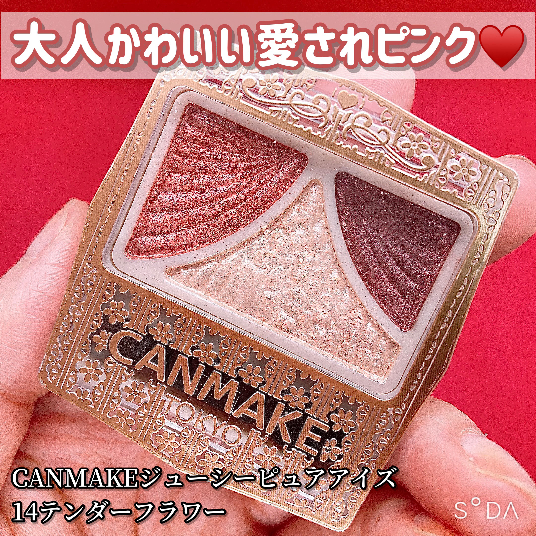 本日のアイシャドウ♡#キャンメイク#ジューシーピュアアイズ14テンダーフラワー16シルエットサンライズの、ふたつのアイシャドウを使いました。14テンダーフラワーだけにしようかなと思ったけど、シルエットサンライズのカラーをまぶたに足してみました...