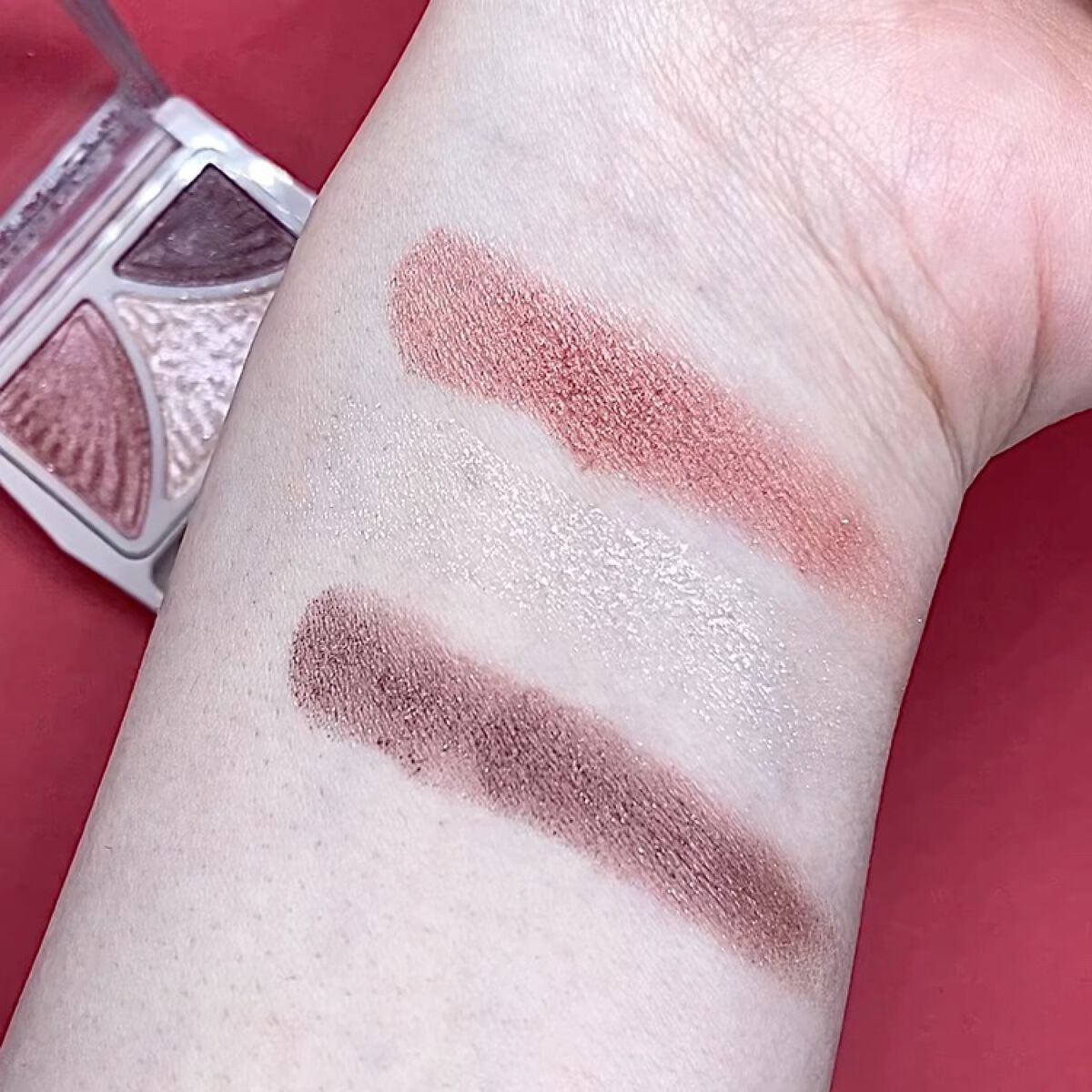 コーラルピンクやくすみ過ぎないレッドが入っているパレット! ラメがイエローラメですごく可愛い! コーラルピンクとレッドのアイシャドウはラメ入りとマットタイプがあって気分に合わせて色んなメイクが出来ます お気に入りポイントは右上のホワイトシルバーのようなカラーにパールがたくさん入っていて涙袋に塗るとぷっくり見えるところ! カラーは一見濃く見えますがテクスチャーが柔らかく、発色は控えめでふんわり発色です 春メイクやピンクメイクがお好きな方にオススメしたい話題のアイシャドウでした!