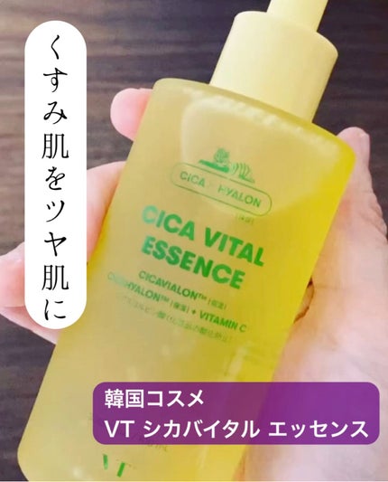 VT Cosmetics VT シカバイタル エッセンス このラインはVTさん独自成分のシカヒアルロンとイギリス産純ビタミンCゆず種子由来ペプチドナイアシンアミドが配合されています😘 ややとろみのある美容液ですが肌にスっと馴染みモチモチ肌に🫶🏻なのにベタつきはなく使い心地が最高でした✨ 香りはさっぱりとした柑橘系の香りでとても癒されます🍀 100mlの大容量なので朝晩たっぷり使えてコスパも◎