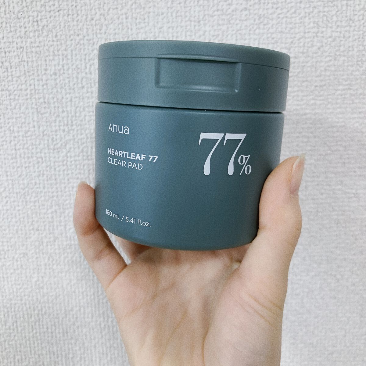 Anuaのハートリーフトナーパッド💚 精製水の代わりにドクダミエキスを77%配合🙌 優しく拭き取ることでマイルドにケアしてくれます🩷 冷蔵庫で冷やしておいて🧊 頬やほてりの気になる所にパックして使うのもオススメです🥰 ピリピリせず、柔らかいパッドなので敏感肌さんで摩擦が気になる人にも使いやすいパッドです🌸