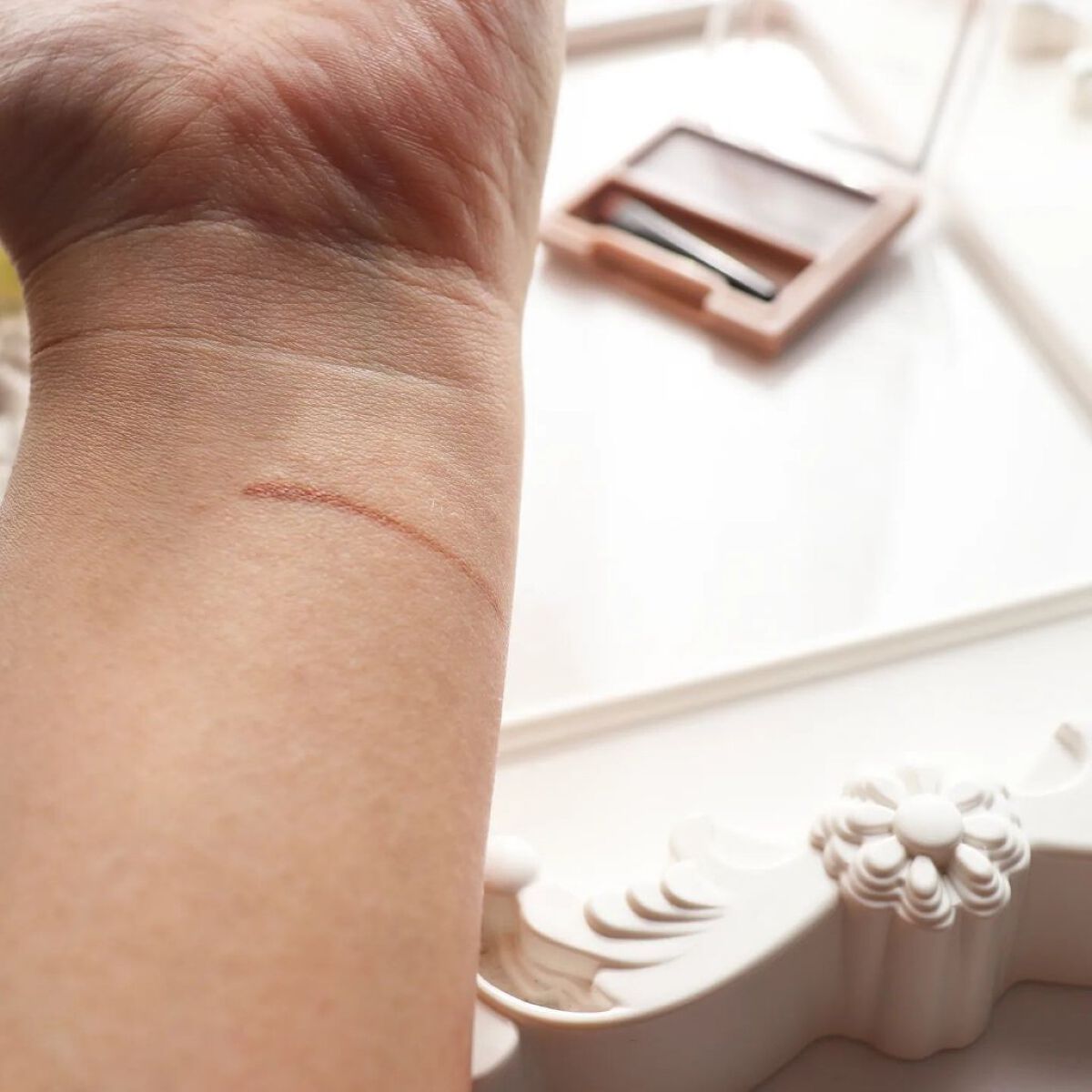 選んだのはくすみピンクカラーです🥰 ブラシがかなり小さめで一度に眉につく液が少ないので、ベタッとしない眉マスカラだなと思います✨️ ブラシの角度が少し折れているので塗りやすいのもポイントです😳