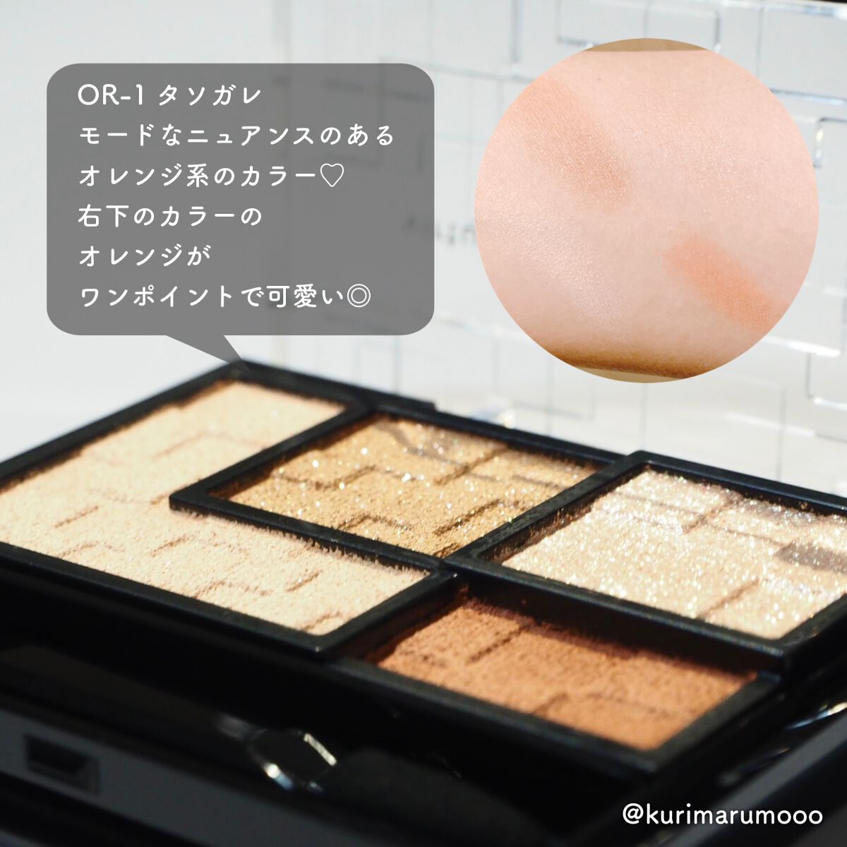 1パレットで下まぶたメイクまで完成するアイシャドウ KATE バーチャルアイズメイカー ¥1,540 下まぶた用のグリッターがキラキラしてすごくかわいいです。 タソガレは大人っぽいけど可愛らしさもあるカラーです。 落ち着いたブラウン系のオレンジでどんな場面でも使いやすいと思います😊