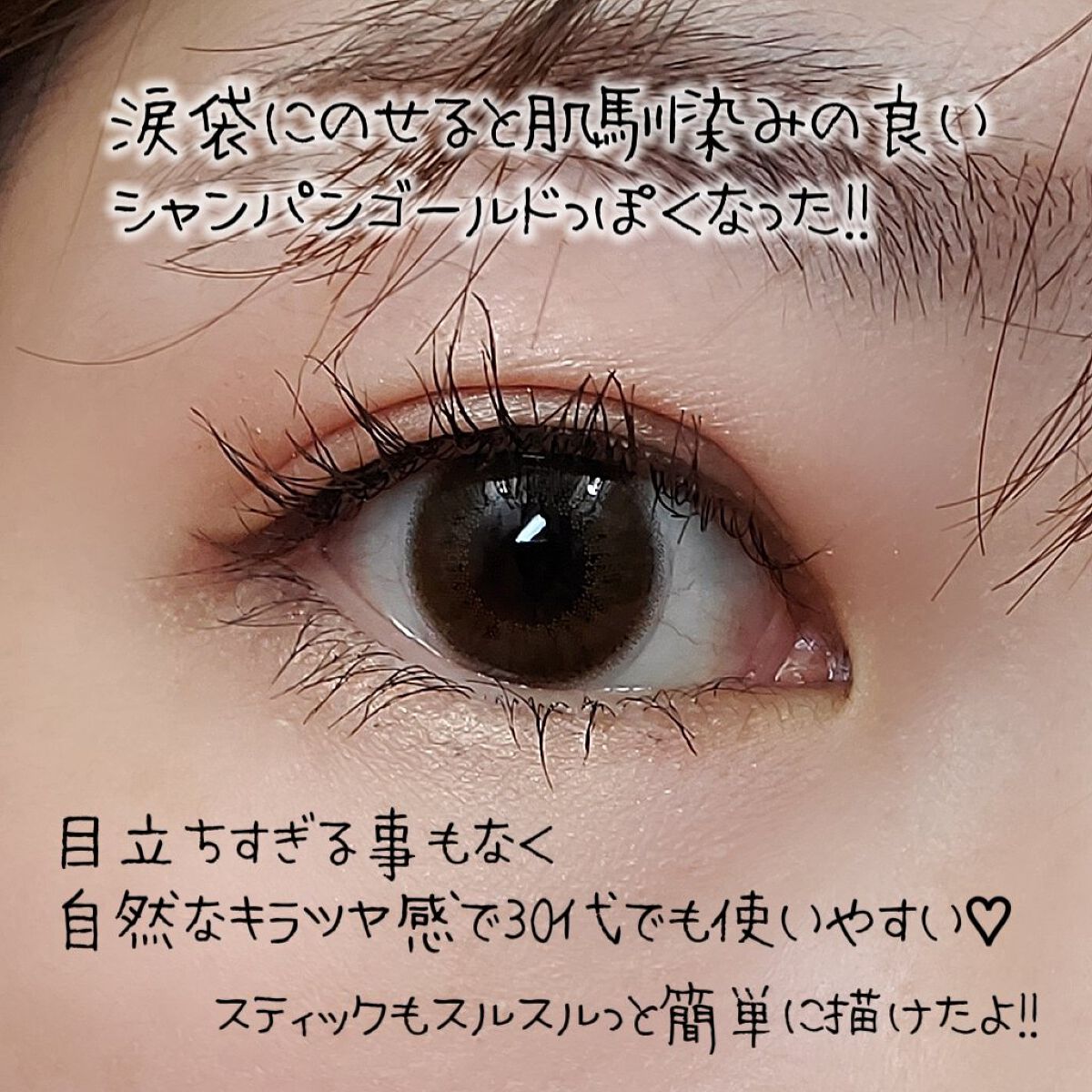 | スティックアイシャドウランキング第6位 | 片方は涙袋の影を自然に描ける細めのシェーディング、もう片方は控えめで上品なハイライト。 | 詳細を見る | ||
