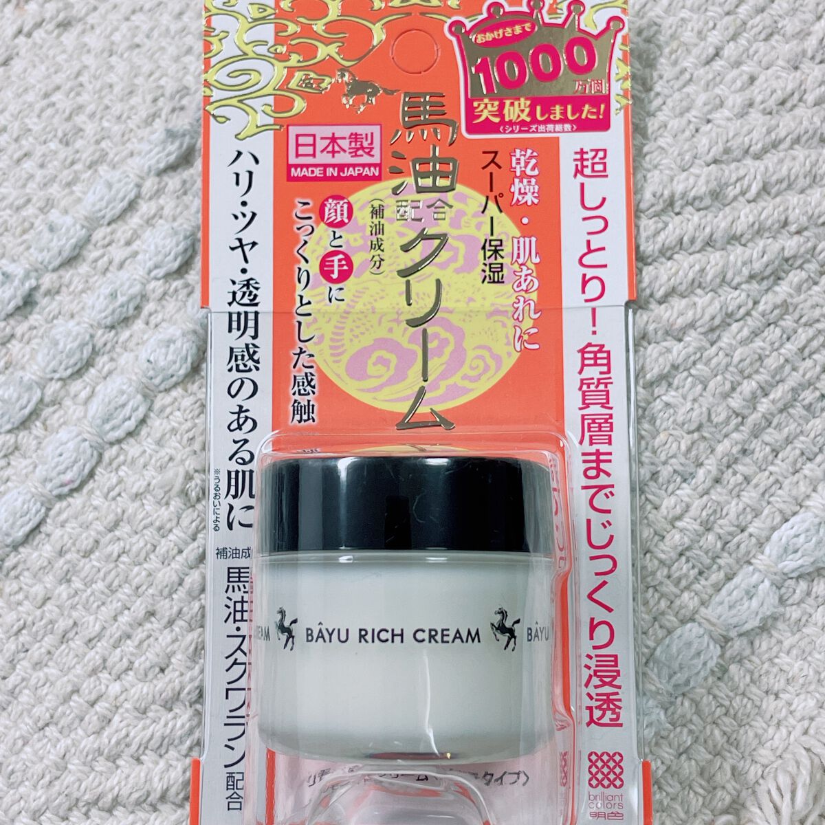 馬油とスクワランを配合したリッチな保湿力で乾燥や肌荒れをガードするしっとりクリームとのこと かなりしっとりとした使用感ですが、馬油特有のベタベタ感がありません 顔だけでなく、ハンドクリームやボディにも使えるところも嬉しいですね♡
