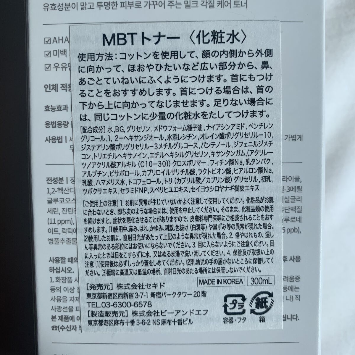 - <300ml> 水、ペンチレングリコール、BG、グリセリン、ヒアルロン酸Na、キサンタンガム、トコフェロール、トリエチルヘキサノイン、エチルヘキシルグリセリン、ツボクサエキス、スベリヒユエキス、乳酸、水添レシチン、セラミドNP、オレイン酸ポリグリセリル-10、パンテノール、アルブチン、ビサボロール、1,2-ヘキサンジオール、メドウフォーム油、(アクリレーツ/アクリル酸アルキル(C10-30))クロスポリマー、トリ(カプリル酸/カプリン酸)グリセリル、セイヨウシロヤナギ樹皮エキス、ナイアシンアミド、ハマメリス水、カプリロイルサリチル酸、ジフェニルジメチコン、ジステアリン酸ポリグリセリル-3メチルグルコース、ラクトビオン酸、フィチン酸Na、乳タンパク、初乳
