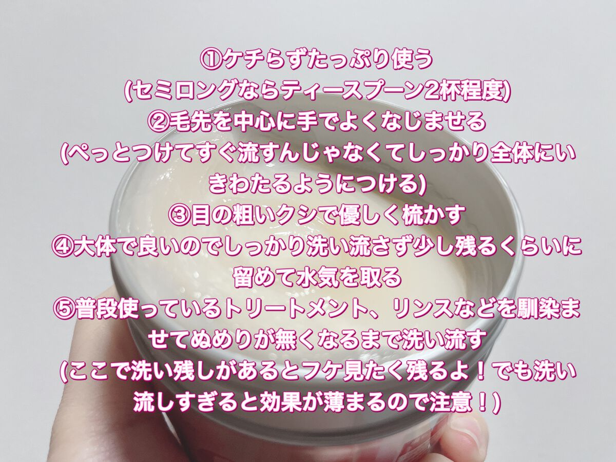 | トリートメントランキング第64位 | しっかり揉み込んで数分おいて洗い流すと 流しながら感じる髪のとぅるとぅる感🥹ドライヤーで乾かしたらサラサラ👏 | 詳細を見る | |