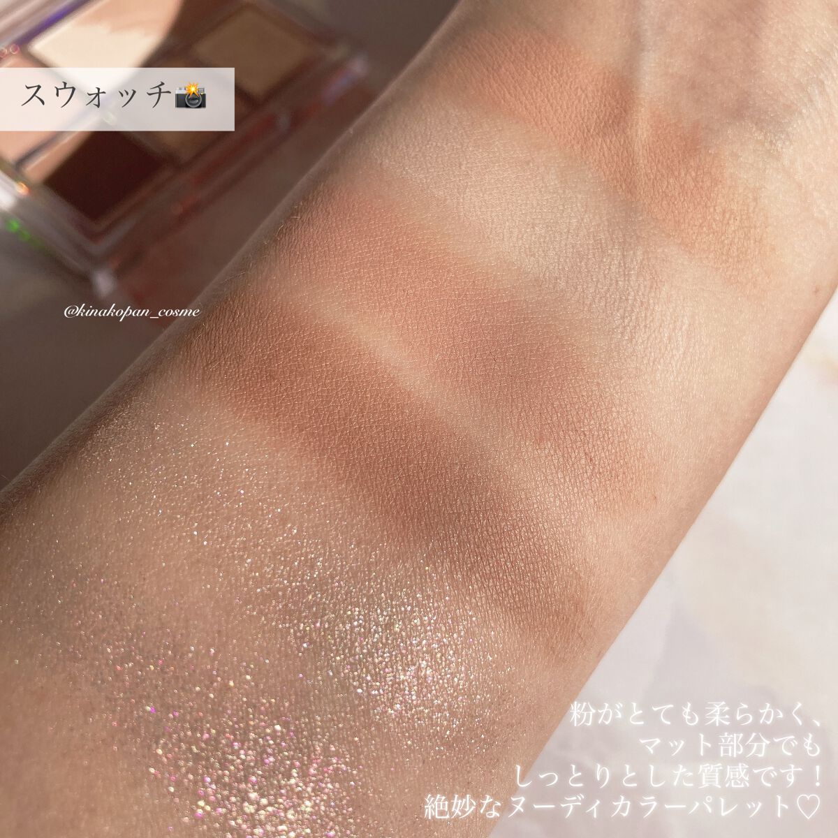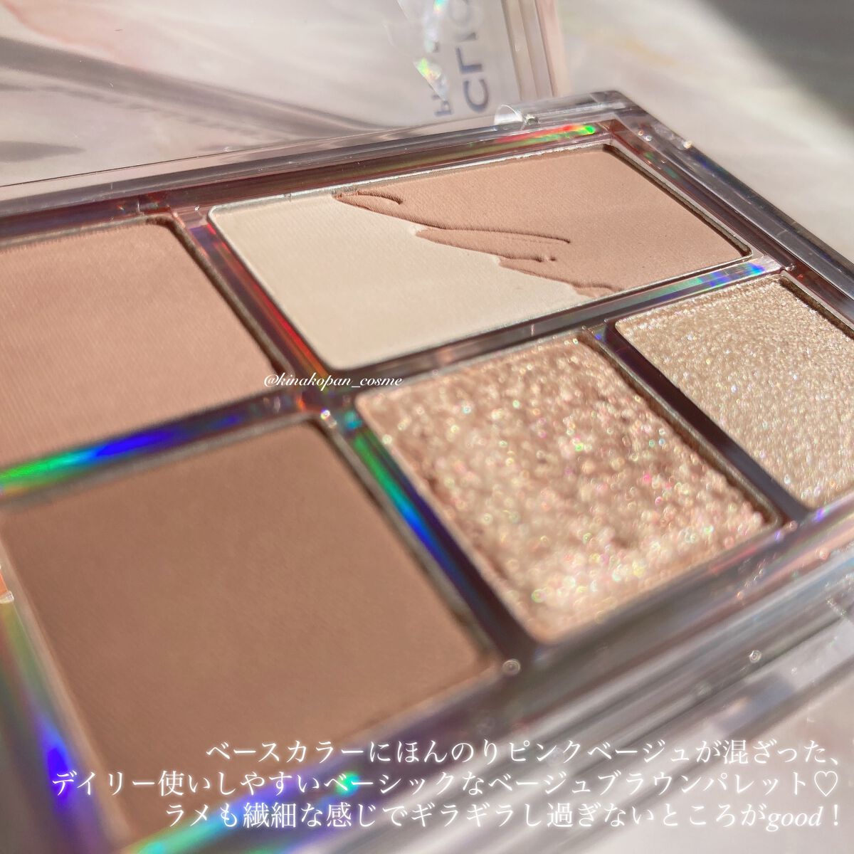 - 同系色陰影カラーと上品でクリアなグリッターの組み合わせの必要なカラーだけ詰め込んだミニアイパレット!
