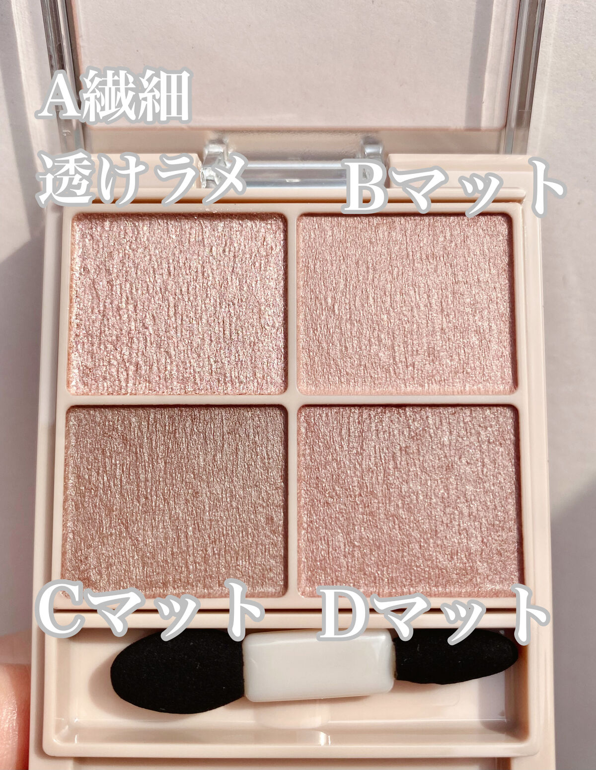 - シルキースフレアイズの姉妹品♡ 肌に溶け込むような透けマットシャドウ 透け感のある柔らかい仕上がりになるマット3色と、透け発色の繊細ラメ1色のパレットシャドウ♡ 完全マットアイや、ラメ×マットアイなど、メイクのパターンを楽しみましょう!