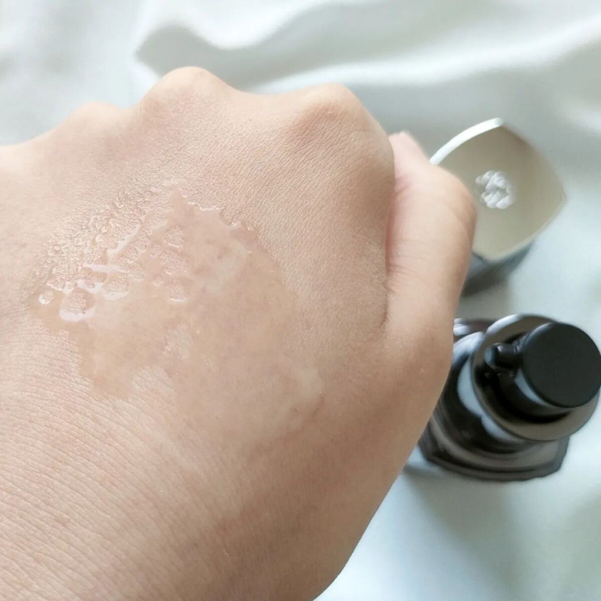 実際に塗布するとスルーっと伸びて、肌に馴染みやすい👌 パールのキラキラ感も相まって、トーンアップしてくれます✨ パール入りでナチュラルなツヤ肌に仕上げてくれます✨ 毛穴もぼかしてくれる感じがして◎ 軽いつけ心地でしっとり感もある! 秋冬に使っていきたいアイテム🎃⛄